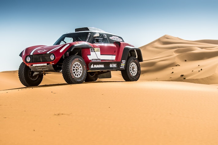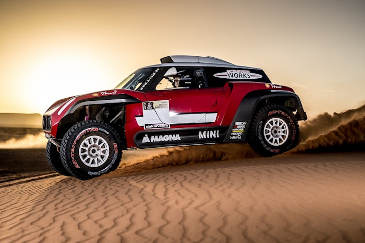 Dal 2012 al 2015 ha dominato, trasformando la Dakar nella propria riserva di caccia preferita. Poi, nel 2016, quando è giunta “solamente” seconda, si sono palesate le prime avvisaglie di un dominio che iniziava a incrinarsi. Il sesto posto nel 2017, infine, ha sgretolato il regno della MINI nel rally raid più famoso al mondo. Un risultato accolto dalla Casa inglese come un fallimento. Un’onta da cancellare al più presto. Ecco quindi che l’edizione 2018 della Dakar vedrà al via non solo la nota John Cooper Works Rally 4WD, ma anche un inedito buggy a trazione posteriore.Ruote più grandi e peso ridotto per la BuggyLa John Cooper Works Buggy rinuncia alle 4WD in favore, come accennato, della trazione posteriore, seguendo l’impostazione tecnica già adottata dalla rivale Peugeot che, con la 2008 DKR, nel 2017 ha monopolizzato il podio della Dakar. Una scelta, da regolamento, foriera di una superiore leggerezza della vettura e della possibilità sia di adottare ruote di diametro nettamente maggiore (sino a 37 pollici contro i 16 pollici della Rally) sia di optare per un’escursione delle sospensioni monstre (46 cm invece di 25 cm), a tutto vantaggio della “digestione” di buche, dune e ostacoli.Cambio sequenziale a 6 marceLa MINI JCW Buggy, nel dettaglio, pesa 150 kg in meno rispetto alla Rally 4WD – l’ago della bilancia si attesta a 1.700 anziché 1.850 kg – mentre la carrozzeria è integralmente in fibre composite, più precisamente in CFRP (poliuretano termoplastico misto a carbonio). Una soluzione caratteristica delle gamme sportive del Gruppo BMW. Analogo alla rivale Peugeot il telaio, tubolare in acciaio, mentre con la “cugina” a trazione integrale condivide il motore. Vale a dire il noto 6 cilindri in linea common rail di 2.993 cc sovralimentato mediante due turbocompressori, in grado di erogare 340 cv e 800 Nm di coppia. Un propulsore raffinato, forte della lubrificazione a carter secco e abbinato a una trasmissione a 6 rapporti. Più precisamente a un cambio sequenziale fornito dalla Xtrac per la Buggy e dalla Sadev per la Rally.JCW Rally per Nani RomaIn base a quanto dichiarato, la MINI John Cooper Works Buggy dovrebbe raggiungere una velocità massima di 190 km/h anziché i 184 km/h appannaggio della Rally, potendo oltretutto contare su di un impianto frenante maggiorato e un serbatoio più piccolo, a tutto vantaggio dell’agilità. La Buggy verrà affidata all’ex rallysta Mikko Hirvonen, a Bryce Menzies e Yazeed Al Rajhi. Al volante della Rally, evoluta rispetto al 2017 a livello telaistico, vi saranno invece l’esperto Nani Roma, Orlando Terranova e Boris Garafulic. Una formazione a più punte con un unico obiettivo: vincere!
