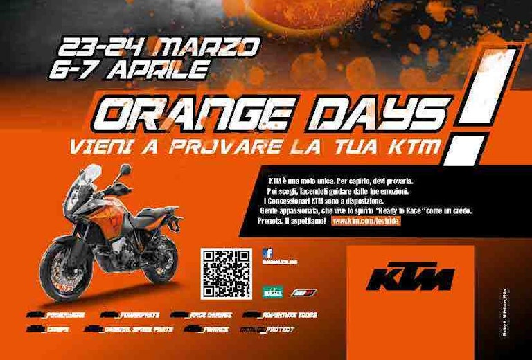 Tornano gli orange days, tradizionale appuntamento con la gamma KTM a disposizione dai concessionari. Le porte saranno aperte il 23-24 marzo e il 6-7 aprile