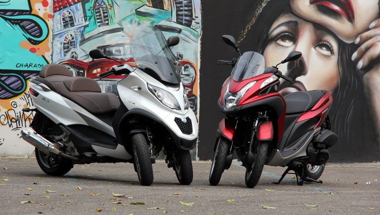 Prima in sordina, poi sempre più presenti sulle strade delle città, i tre ruote sono una realtà, con tante sfaccettature. Le sperimentiamo provando i due modelli estremi del segmento: Yamaha Tricity 125 e Piaggio MP3 500 Business