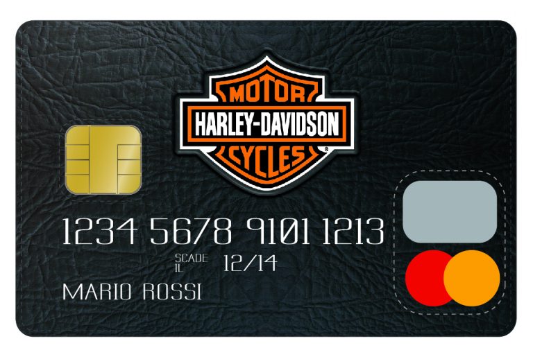 Dal 2007 gli appassionati del marchio americano possono sfoggiare una carta di credito MasterCard dedicata. Ora dispone di nuove funzionalità, oltre a permettere come sempre di partecipare a speciali iniziative e promozioni Harley. Come riconoscerla? Dal look che richiama la pelle tipica dell’abbigliamento dei biker…