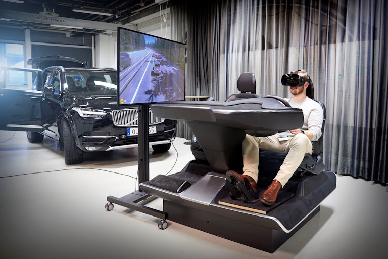 I tecnici del brand svedese puntano sul simulatore dei videogame per creare scenari di traffico su percorsi di prova con auto reali