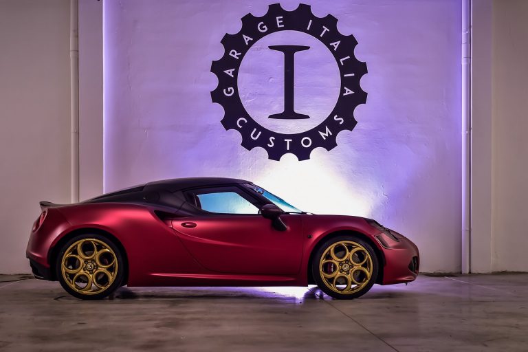 Garage Italia Customs, l’atelier di Lapo Elkann, ha presentato a Dubai un’originale interpretazione su base Alfa Romeo 4C. Alcantara a profusione e verniciatura raffinata.