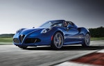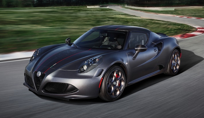 ALFA ROMEO 4C COUPÉ COMPETIZIONE E SPIDER ITALIAAnche per queste due edizioni limitate della Alfa Romeo 4C si parla di 108 esemplari ciascuna. La Coupé Competizione cattura gli sguardi con una livrea Grigio Vesuvio Opaco (le decal sono a discrezione del cliente) e diversi particolari in carbonio. All’interno, conquistano la scena sedili in pelle in microfibra con cuciture rosse e volante sportivo. La 4C Spider Italia si distingue invece per il Blu Misano della carrozzeria e le pinze freno gialle, che fanno pendant con le cuciture di sedili, plancia, volante e pannelli porta.
