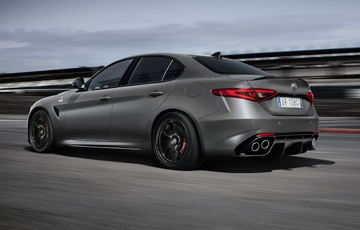 GIULIA Ti VELOCE E SUPERContraddistinta dalla tinta Rosso Competizione, la Alfa Romeo Giulia Ti Veloce stuzzica gli appassionati con qualche capello bianco in testa, andando a rispolverare un nome storico per Alfa. Con prestazioni che si annunciano all’altezza, garantite dal 2.0 turbo benzina da 280 CV, cambio automatico a 8 rapporti e trazione integrale Q4. All’interno spiccano cielo nero, la plancia rivestita in pelle con inserti in carbonio, i sedili in pelle e Alcantara con cuciture nere. Numerosi i dettagli in carbonio firmati Mopar, così come le minigonne con inserto in carbonio e lo spoiler posteriore, derivati dalla Quadrifoglio. I cerchi in lega sono da 19″ e le pinze freno sono state verniciate in rosso. Completano la dotazione il sistema infotainment con schermo da 8,8″, Apple CarPlay e Android Auto e DAB, l’adaptive cruise control, i cristalli privacy e l’impianto audio Harman Kardon. La Alfa Romeo Giulia Super, invece, al 2.0 turbo da 200 CV con cambio automatico unisce la colorazione esterna in Nero Vulcano e interni in pelle beige a inserti in vero legno grigio di quercia.