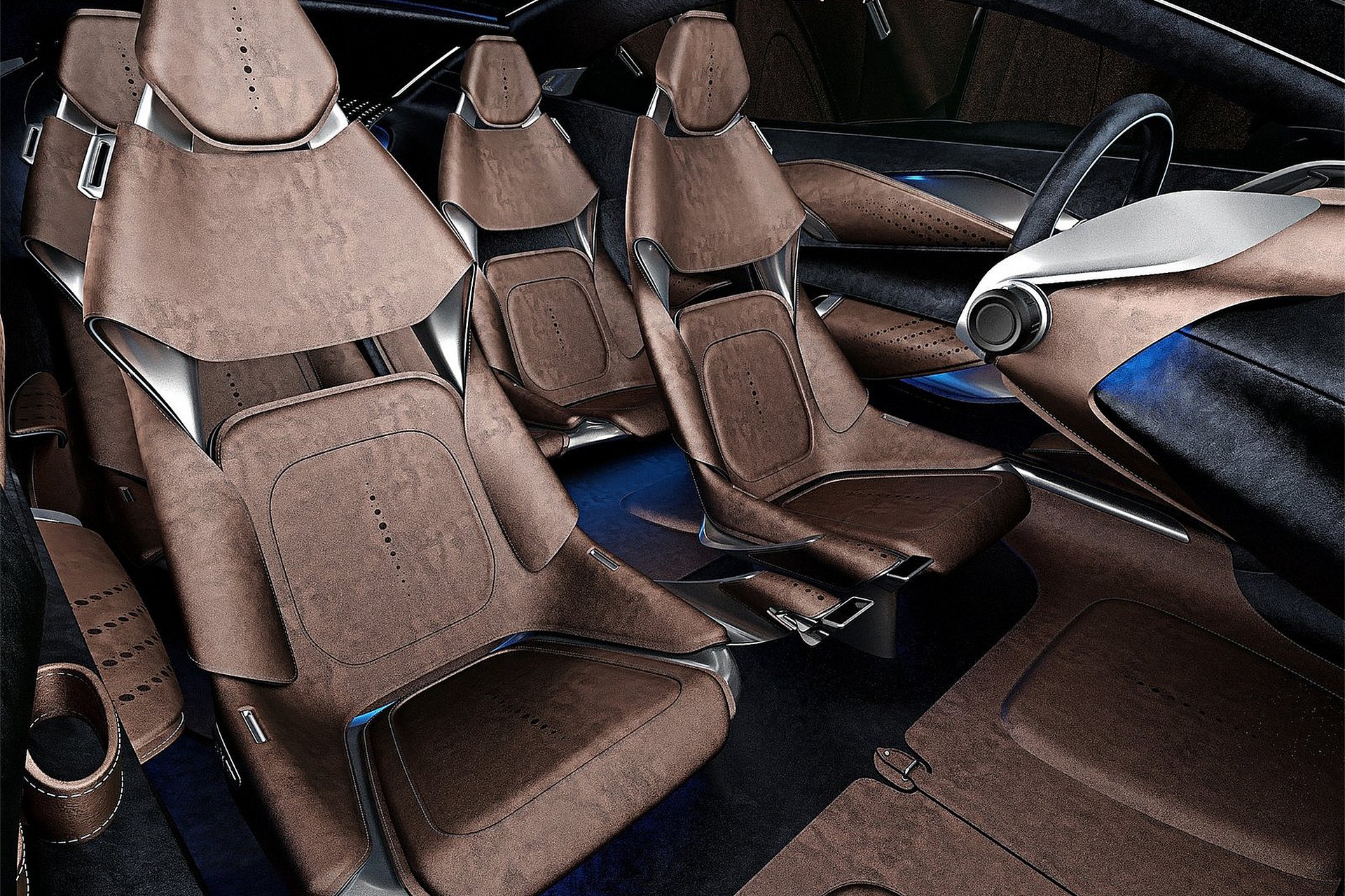 L’estrema Vantage GT3 era uno specchietto per le allodole. Il colpo del KO non romba… sibila! DBX Concept anticipa la futura Gran Turismo britannica a zero emissioni. Un modello sinora mai proposto dalla Casa anglosassone e caratterizzato da quattro sedute, un’altezza da terra superiore alle “sorelle”, sterzo by-wire – vale a dire che affida all’elettronica anziché alle connessioni meccaniche la trasmissione dei comandi – e, soprattutto, quattro motori elettrici. Unità integrate nei gruppi ruota e alimentate mediante batterie al solfuro di litio assistite da un moderno sistema di recupero dell’energia nelle fasi non di carico del propulsore. Una sorta di Kers addomesticato.