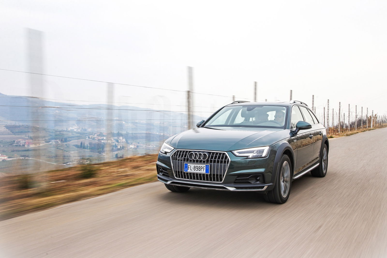 Traffico senza pensieriSu questa allroad è presente innanzitutto l’Audi Active Lane Assist. Qualora si oltrepassi la linea che delimita la corsia su cui si viaggia, viene generata una vibrazione al volante e l’auto agisce autonomamente sullo sterzo ripristinando la corretta posizione. Su questa allroad è disponibile l’Adaptive cruise control con assistenza alla guida nel traffico, denominato Jam Assist. Con il sistema attivato, l’auto non solo mantiene autonomamente la distanza dal veicolo che precede ma è in grado di fermarsi e ripartire in modo automatico. Non è finita: fino a 65 km/h può sterzare autonomamente per evitare eventuali ostacoli. Questa tecnologia è abbinata all’Audi Pre Sense, che aziona autonomamente i freni nel caso in cui il veicolo che precede si arresti troppo bruscamente. DRIVE Iniziamo la prova di sera. A bordo siamo accolti da un abitacolo che, nonostante fuori sia parecchio buio, è illuminato a giorno. Portiere e cruscotto lato passeggero sono percorsi da strisce LED eleganti ed efficaci. Il meccanismo di regolazione del sedile manuale appare però un po’ sottotono rispetto alle altre dotazioni. La posizione di guida infonde una piacevole sensazione di spazio a disposizione, mentre lo sterzo regala un buon feeling all’impugnatura.Due cilindri in menoIl piano di viaggio prevede una prima parte cittadina seguita da un tratto autostradale per raggiungere il luogo dove l’allroad si sentirà a casa… Fin dai primi chilometri troviamo lo sterzo leggero e ben gestibile in manovra, non impressiona per comunicabilità, ma è estremamente preciso e razionale. Il motore della versione in prova è il collaudato 2.0 TDI da 190 cavalli di potenza e 400 Nm di coppia, abbinato al cambio automatico S-Tronic a 7 rapporti. Inizialmente il pregiudizio che questa unità sia un “3.0 V6 ti vorrei ma non posso” c’è, è innegabile. Ma è davvero così?Mai in affannoNella marcia a bassa velocità la differenza di cubatura un po’ si sente. Quando si viaggia con un filo di gas tra i 1.200 e i 1.800 giri/min si avverte, infatti, una piccola ruvidità meccanica percepibile più a livello di erogazione che di spinta. Proseguendo nella guida, però, il motore di questa allroad dimostra di saper lavorare in perfetta simbiosi con il cambio e spinge più di quanto i 190 cavalli dichiarati farebbero pensare. Non si sta parlando di sensazioni sportive, ma della sensazione che la potenza sia più che adeguata. Sono ben 6 le modalità di guida che è possibile selezionare tramite l’Audi Drive Select: Auto, Comfort, Efficiency, Dynamic, Offroad e la personalizzabile Individual. I nomi chiariscono la vocazione di ciascuna modalità. Il cambio offre tre opzioni d’uso: Drive (D), Sport (S) e Manuale (M).In fondo, guidiamo ancora noiLe ripartenze sono molto fluide e la puntualità delle cambiate impeccabile. In autostrada si viaggia a velocità codice attorno ai 1.700 giri/min, con il motore pressoché inavvertibile in sottofondo. È giunto il momento di provare i sistemi di aiuto alla guida. Il mantenimento di corsia è preciso e funzionale: mantiene l’auto al centro della corsia e non “rimbalza” tra le linee che la delimitano, come è capitato di rilevare con altri sistemi, le correzioni sono minime, inavvertibili. In questo siamo al top. Il raggio di curva viene seguito con dolcezza, senza inutili scatti.La grinta c’èSaliamo di un livello in termini di guida assistita e inseriamo l’Active Cruise Control. È un’ulteriore riconferma di quanto apprezzato col mantenimento di corsia. Docile e mai nervoso nelle frenate, durante il cambio di corsia rileva subito la velocità del veicolo che precede “agganciandolo”. Abbandoniamo l’autostrada e imbocchiamo una statale che sale tortuosa. In modalità S e M ci si può divertire, accompagnati dal motore che sfodera agli alti regimi (soprattutto nelle marce basse) una sonorità piacevole con il fischio della turbina in sottofondo. Questo TDi è caratterizzato da un inatteso allungo, la spinta cala un po’ dopo i 4.200 giri/min, ma siamo già a regimi “sportivi” per un Diesel. A 4.500 giri il cambio, anche in modalità manuale, passa automaticamente al rapporto superiore. La sportività estrema non è, ovviamente, nelle corde della A4 allroad, per quello Audi offre altri modelli, ma è bello scoprire che quest’auto sia in grado di tirare fuori gli artigli.