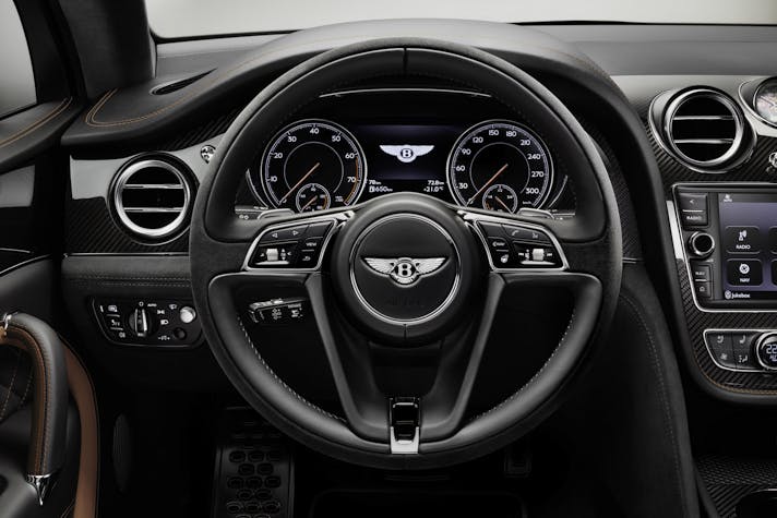 Naturalmente la Bentayga Speed è anche lusso sfrenato: l’abitacolo, realizzato a mano nell’impianto produttivo di Crewe, può essere rivestito in Alcantara – una prèmiere per Bentley – o in classico cuoio. I facoltosi clienti possono anche arricchire la dotazione con accessori quali sedili anteriori con 22 regolazioni elettriche e funzione massaggio, inserti in fibra di carbonio per la plancia, sistema di intrattenimento per i passeggeri posteriori e illuminazione d’atmosfera.