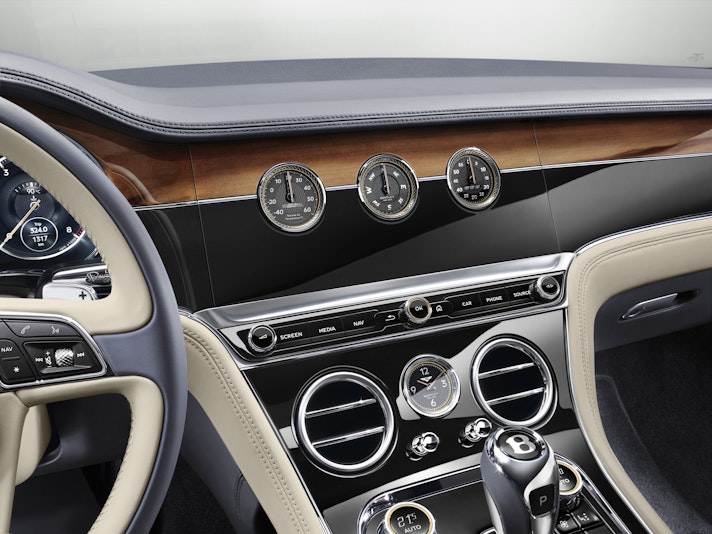 Una linea da urloInfluenzato dalla concept EXP 10 Speed 6 del 2016, il look della Coupé inglese abbina dimensioni pressoché identiche al passato – la vettura si conferma lunga 4,8 metri – a un aspetto decisamente meno massiccio. Più affilata e con sbalzi dallo sviluppo inferiore, la nuova Continental GT può contare su di un cofano motore ancora più pronunciato, archi passaruota mai così muscolosi, cerchi in lega sino a 22 pollici (da 21 pollici di serie), andamento a goccia del padiglione, uscite ovali degli scarichi e un abitacolo a dir poco irriconoscibile. La parte centrale della plancia, ad esempio, è dominata dal “Bentley rotating display” da 12,3 pollici – in passato il touchscreen era da 8 pollici – che il guidatore può regolare su tre posizioni mostrando ora lo schermo, ora i rivestimenti in radica, ora tre indicatori analogici dedicati alla temperatura esterna, alla bussola e al cronometro. E le possibilità di personalizzazione? Pressoché infinite. È infatti possibile scegliere tra 15 varianti di moquette, 15 rivestimenti in pelle, sedili elettrici con oltre venti regolazioni e un impianto audio a 18 altoparlanti da 2.200 Watt.900 Nm di coppiaNo, non hanno ceduto. Il downsizing non ha avuto chance. Derivato dalla SUV Bentayga, sottopelle pulsa il classico W12 6.0 biturbo benzina di derivazione Audi, portato dagli originari 590 cv agli attuali 635 cv. Una potenza prossima a quanto garantito dalla versione Speed della precedente generazione, accreditata di 642 cv. L’upgrade più rilevante interessa però la coppia erogata dal W12, cresciuta da 720 a 900 Nm. Interventi che consentono alla Coupé inglese di scattare da 0 a 100 km/h in 3,7 secondi anziché in 4,5 secondi come in passato e di raggiungere una velocitò massima di 333 km/h invece di 319 km/h. Prestazioni sulle quali influisce positivamente il cambiamento radicale della trasmissione. Il classico cambio automatico ZF a 8 rapporti del tipo mediante convertitore di coppia viene “pensionato” da un’inedita unità – sempre a 8 marce – a doppia frizione. Una piccola rivoluzione.