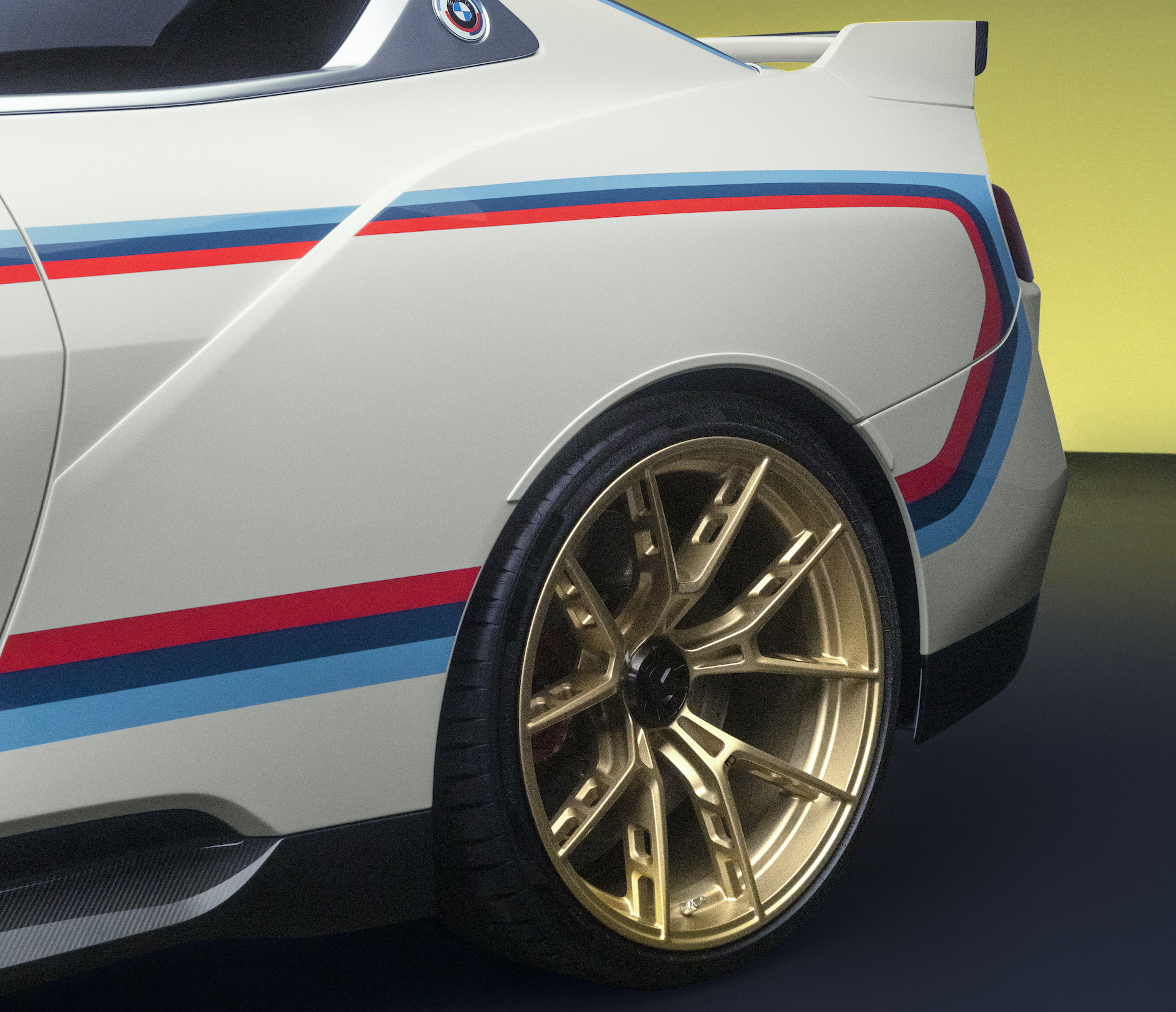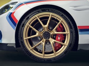 La BMW 3.0 CSL offre varie modalità di guida e 10 livelli di risposta per l’M Traction Control. Sospensioni e telaio sono stati messi a punto nel corso di lunghe sessioni di test al Nürburgring, mentre l’impianto frenante vanta dischi da 400 mm all’anteriore e da 380 mm al posteriore, con pinze rosse. Tutto questo comunque non basta, con le potenze odierne: è fondamentale lo studio in galleria del vento, che nel caso della 3.0 CSL è valso il pacchetto aerodinamico comprensivo di splitter, pannelli laterali, doppia ala (sul tetto e sul baule). Quanto al design, la forma della calandra, con il doppio rene meno esteso in altezza, è un omaggio a quella della 3.0 CSL originale. Particolari inoltre i fari Laser di colore giallo, che ricordano quelli di auto da corsa come la M4 GT3, vincitrice del Campionato DTM 2022. Ultimo, ma non per importanza, i passaruota: più gonfi che mai, ospitano pneumatici Michelin (specifici per questa BMW) montati su nuovi cerchi da 20” all’anteriore e 21” al posteriore.