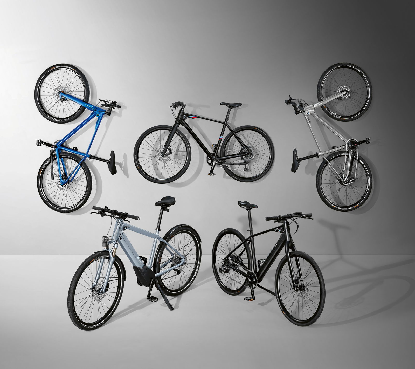 La BMW Cruise Bike si ispira alla tendenza del fixie con il suo telaio sottile disegnato da Designworks, lo studio di innovazione del design del BMW Group. A differenza di una classica bicicletta fixie, il modello BMW non rinuncia a nulla in termini di comfort, con il cambio Shimano Nexus a sette marce integrato nel mozzo posteriore. La BMW M Bike è una creazione più sportiva, ispirata alle auto BMW M e decorata con vernice nera opaca e strisce nella combinazione di colori M Motorsport. Il gruppo Shimano SLX / XT ha undici velocità, mentre forcella e reggisella sono realizzati in fibra di carbonio per un design leggero e uno stile sportivo.