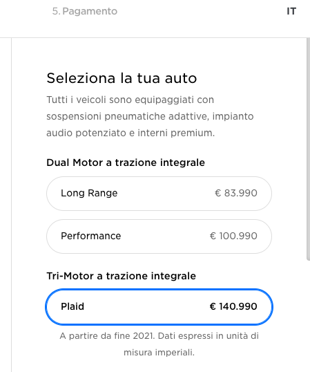 Si sa molto meno in merito alla Tesla, se non che i motori per la prima volta sono tre e che l’autonomia della Model S Plaid tocca gli 840 km, segno che evidentemente le batterie sono di una capacità superiore rispetto a quanto visto finora (ci dovremmo trovare dunque ben oltre i 100 kW/h).