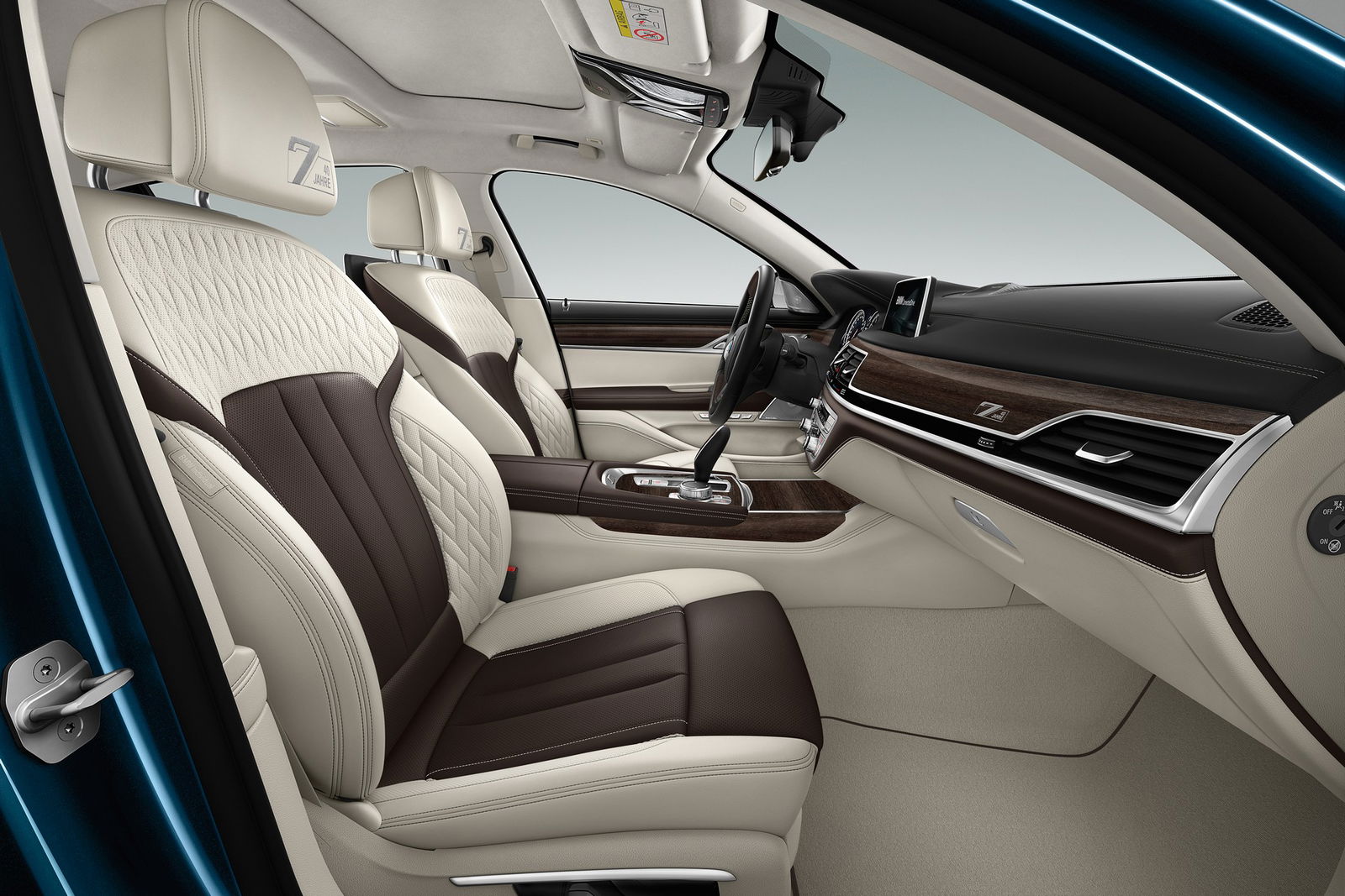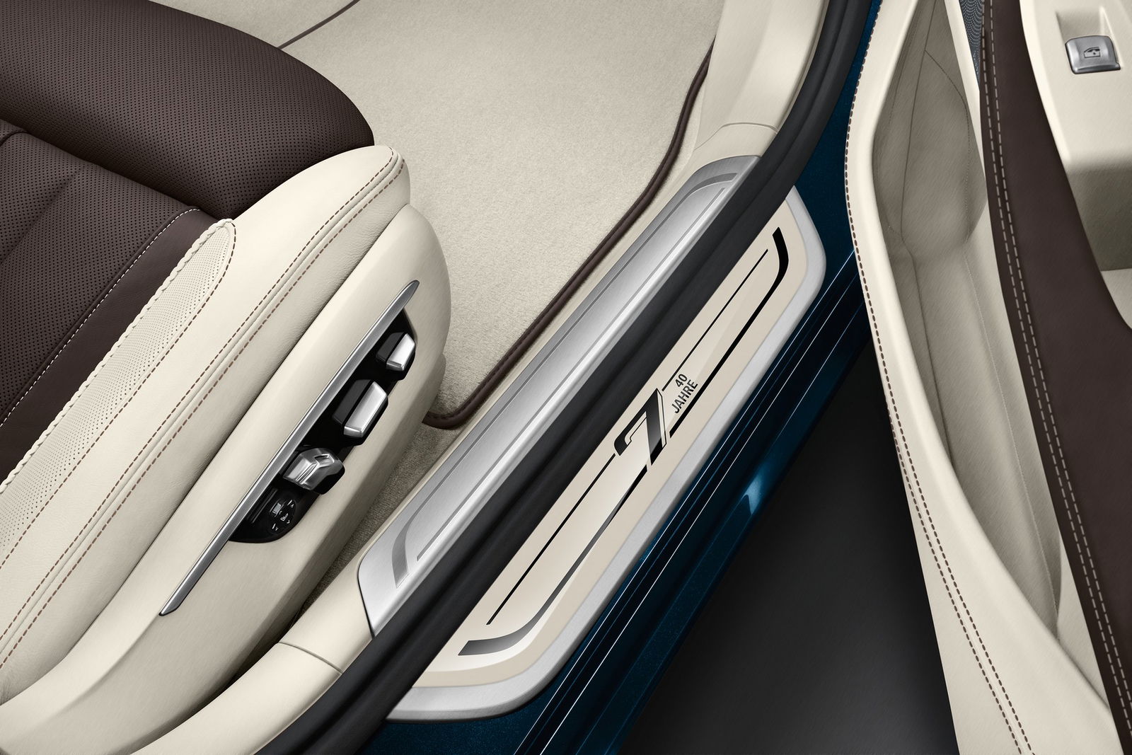 Tinte esclusiveLa raffinatezza dell’allestimento celebrativo BMW viene ulteriormente rafforzata dalla disponibilità di due tinte esclusive per la carrozzeria – Individual Frozen Silver e Individual Petrol Mica – abbinate al pacchetto aerodinamico M e ai cerchi in lega da 20 pollici oltre che ai badge specifici collocati lungo i montanti C e i battitacco. Quanto all’abitacolo, ai rivestimenti in pelle Individual Merino (bianca o nera) si accompagnano il padiglione in Alcantara, i sedili Comfort e gli inserti in radica di eucalipto. Immancabili la ricarica induttiva per lo smartphone, i fari Laser e il parcheggio telecomandato: grazie alla chiave a display, la Serie 7 parcheggia ed esce da un’area di sosta in modo totalmente autonomo. I clienti avranno la possibilità di attingere a piene mani allo sterminato catalogo degli optional riservati all’ammiraglia tedesca.