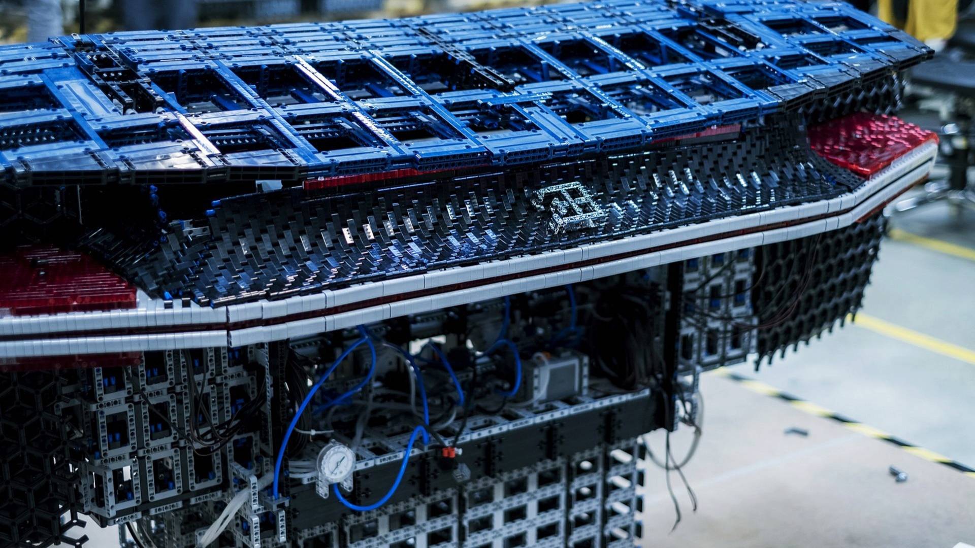 Eppur si muoveLa Bugatti Chiron di Lego, che ha richiesto qualcosa come 13.000 ore di lavoro per essere portata a termine, è mossa da 2.304 motori elettrici Lego Technic Power Functions, collegati a due batterie e capaci di erogare una potenza di 5,3 cv e una coppia di 92 Nm. Il tutto permette di raggiungere la velocità massima di 30 km/h. Per guidarla ci sono il volante e il pedale del freno, oltre a una pulsantiera per gestire l’impianto di illuminazione.