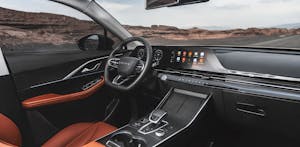 Quanto agli interni, l’accento è stato posto sul look hi-tech e minimalista. Le linee sulla plancia sono poche ma la sensazione è tutt’altro che di banalità. Anzi, si respirano ricercatezza e modernità, con un tocco di sportività: i sedili per esempio sono avvolgenti e sfoggiano il poggiatesta integrato; il volante ha la corona piatta nella parte inferiore. Al centro della plancia spicca invece il grande elemento a sbalzo che ingloba due display: quello dietro al volante è dedicato alla strumentazione, mentre quello centrale, dotato di tecnologia touch, è riservato al sistema di infotainment.