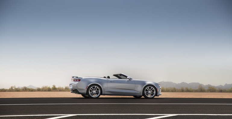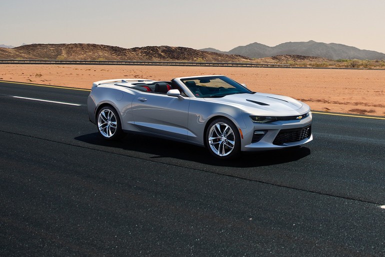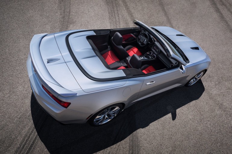 In tela sì, ma con una grande novità: l’azionamento elettrico può ora avvenire anche a distanza, mediante telecomando. L’apertura e chiusura totale sono possibili sino a una velocità massima di 48 km/h e, una volta a cielo aperto, la capote ripiegata è finalmente corredata di una copertura rigida che la nasconde alla vista. Affinamenti necessari, dato che la sesta generazione della vettura americana è chiamata ad arginare l’offensiva della rivale Ford Mustang che, ai consueti V6 e V8 benzina, ha recentemente affiancato un 4 cilindri in linea EcoBoost di 2,3 litri a iniezione diretta e fasatura variabile, sovralimentato mediante turbocompressore e in grado di erogare 317 cv. In Chevrolet sono quindi stati costretti a capitolare: al V6 3.6 e al top di gamma V8 6.2 si aggiunge, analogamente alla coupé, un 2.0 turbo da 279 cv e 400 Nm.