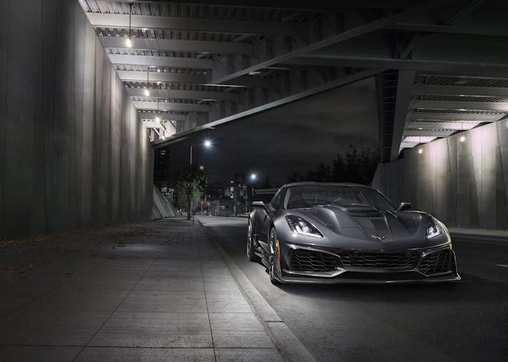 Splitter e doppio alettoneTra le novità aerodinamiche portate al debutto dalla ZR1 MY18 spiccano lo splitter in fibre composite a incidenza fissa – una prima assoluta per la gamma Corvette – corredato di appendici laterali che aumentano la deportanza in curva, e l’alettone proposto in due configurazioni: bassa, a tutto vantaggio della velocità massima, oppure alta, inclusa nel pacchetto ZTK Performance Package. Nel primo caso è comunque disponibile un carico verticale superiore del 70% rispetto alla Z06 standard, mentre nel secondo l’incremento della downforce è quantificabile nel 60% qualora paragonato all’estrema Z06 con il pack Performance. Completano la dotazione tecnica della ZR1 MY18 i freni carboceramici con pinze anteriori a 6 pistoncini, i cerchi in lega anteriori da 19 pollici, posteriori da 20 pollici, e le sospensioni magnetoreologiche dalla taratura specifica.