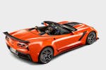 Compressore volumetrico e carter seccoSottopelle, come accennato, pulsa il noto V8 6.2 a fasatura variabile sovralimentato mediante compressore volumetrico, portato dai 647 cv appannaggio della precedente generazione agli attuali 765 cv. Un’unità caratterizzata dalla lubrificazione a carter secco, dalla distribuzione a due valvole per cilindro e, per la prima volta nella storia del Gruppo General Motors, dalla “doppia” iniezione diretta della benzina. Una tecnologia condivisa con la “gemella” a tetto rigido e basata sulla presenza d’iniettori supplementari rispetto allo standard, a tutto vantaggio dell’ottimizzazione della combustione e del rendimento del propulsore.La prima volta del cambio automaticoPer contenere 765 cv, il telaio della ZR1 Convertible dovrà essere rinforzato in modo estremo, massiccio, incidendo pesantemente sul peso della vettura. Nulla di più falso, dato che la configurazione di carrozzeria cabriolet porta in dote un aggravio ponderale contenuto in 27 kg, per una massa totale di 1.641 kg. La trazione, da tradizione, è posteriore, mentre il reparto trasmissione si avvale di una classica unità manuale a 7 rapporti o, in alternativa, del primo cambio automatico mai dedicato alla ZR1, vale a dire un 8 marce del tipo mediante convertitore di coppia corredato dell’opzione manuale con le levette al volante. Ne conseguono prestazioni da urlo. Basti pensare che la sportiva americana scatta da 0 a 100 km/h in 3 secondi e raggiunge una velocità massima di 320 km/h contro i 340 km/h appannaggio della ZR1 a tetto rigido.