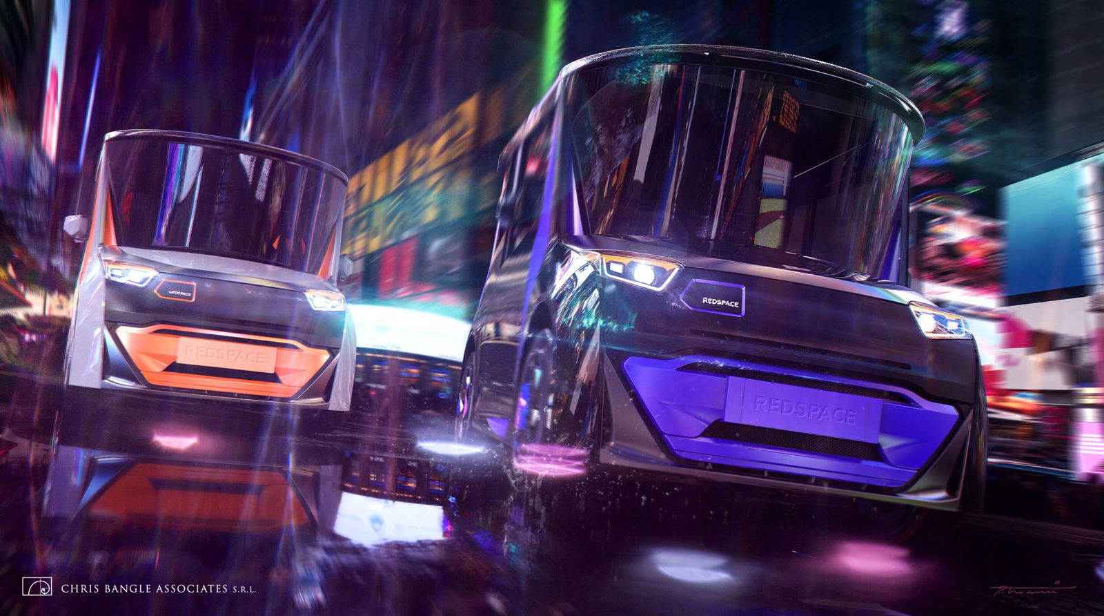La CHTC REDS è lunga appena 297 cm e ha forme di rottura, proprio come la maggioranza delle auto uscite dalla matita di Bangle, dalla Fiat Coupé alla BMW X6, passando per le varie Serie 5 e 7 o la prima Z4. Qui a sorprendere sono soprattutto lo sviluppo in altezza e i tagli del parabrezza e del lunotto, che regalano alla REDS una sagoma un po’ a clessidra. L’aerodinamica non sarà il massimo? Il problema dovrebbe essere relativo, visto che il progetto parte del presupposto che questa city car passerà molto tempo viaggiando a passo d’uomo o addirittura ferma. Bangle e soci si sono così concentrati così soprattutto su come ripensare lo spazio interno in funzione del tempo che vi verrà trascorso, rendendolo accogliente e funzionale. Il risultato è un abitacolo capace di ospitare quattro adulti in movimento e un eventuale quinto nelle soste, nelle quali l’interno si può trasformare in un ufficio, in un salotto e, perché no?, anche in un’alcova. Tra le sue chicche ci sono il sedile di guida girevole, piani d’appoggio e uno schermo da ben 17 pollici, mentre il tetto ospita pannelli solari.