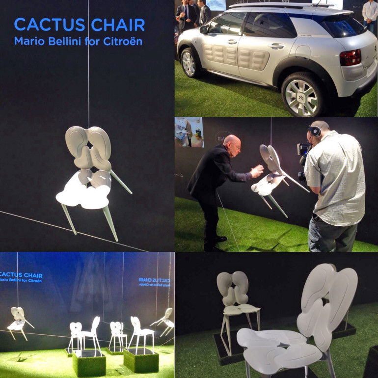 Le sue linee sono armoniose e la classe non le manca, specie se accostata alla C4 Cactus W (in alto a destra nella composizione fotografica) nella livrea monocolore bianca. Anche se si tratta di una seduta in progress, ancora da definire nei dettagli, le premesse per un risultato finale innovativo ci sono tutte. La Cactus Chair sarà visibile nell’accogliente spazio “Garage Tortona” di via Tortona 20, fino al 17 aprile e sarà esposta anche nelle vetrine di Benetton in Piazza Duomo, in occasione di Tribute to Domus per celebrare i 1.000 numeri della rivista.
