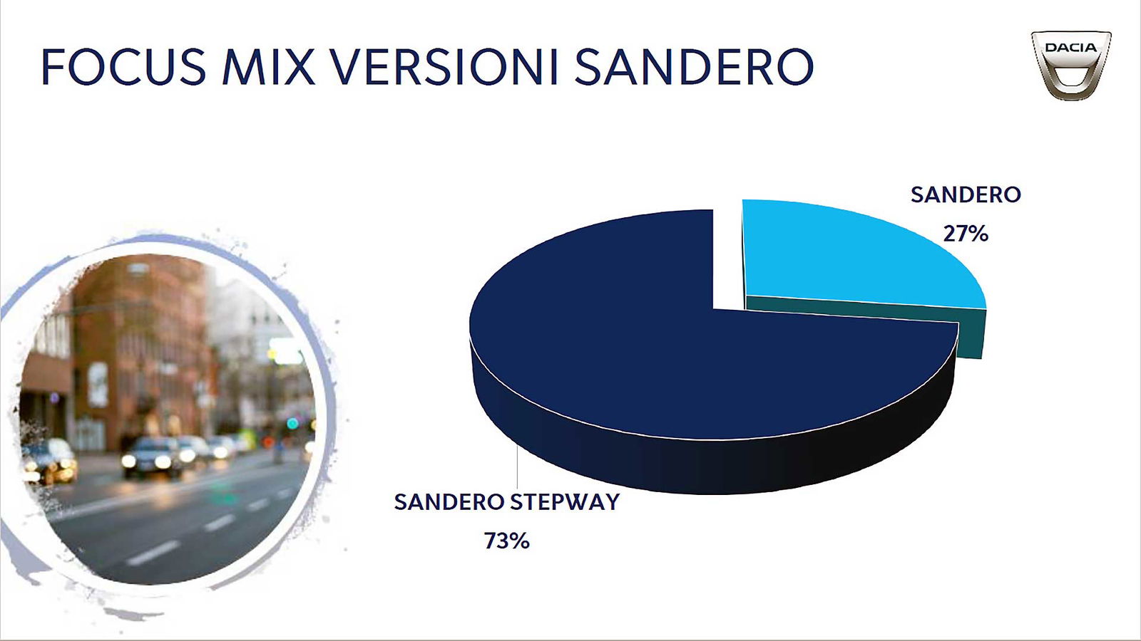 La Dacia Sandero Streetway viene proposta con due allestimenti, Access e Comfort, e costituisce il livello d’ingresso alla gamma. È una vettura pensata per la clientela più attenta alla caratteristica che maggiormente ha determinato il successo delle Dacia, vale a dire un rapporto prezzo/contenuti difficile da battere: secondo la casa, la Comfort della gamma attuale permette – a parità di equipaggiamento – un risparmio di 500 euro rispetto alla precedente.Per il resto, l’impostazione della compatta a cinque porte del marchio romeno (che fa capo al Gruppo Renault) non cambia, e in tema di estetica l’elemento che più salta all’occhio è la scritta identificativa alla base dei finestrini anteriori. Di conseguenza anche le caratteristiche di funzionalità sono quelle già note, a cominciare dal notevole spazio disponibile a bordo: anche se è lunga solo 402 cm – una “taglia” perfettamente in linea con le altre utilitarie del segmento B – la Sandero offre cinque posti “veri” e un bagagliaio di 320 litri, espandibile a 1200 litri reclinando lo schienale del divano (suddiviso in due sezioni asimmetriche). Cinque i colori disponibili per la carrozzeria: Blu Cosmo, Blue Navy, Bianco Ghiaccio, Brun Vison, Grigio Cometa e Nero Nacré.Effetto Streetway anche su StepwayPer chi – pur orientandosi su una vettura “low cost” – desidera qualcosa di più personale ed esteticamente gratificante c’è sempre la Stepway, ossia la crossover. In questo caso i livelli di equipaggiamento sono tre: all’Access e al Comfort si aggiunge la più “ricca” serie speciale SS WOW. Dunque anche il nome Stepway ora identifica a tutti gli effetti una versione, e non più l’allestimento più ricco e grintoso come accadeva in passato.Secondo le previsioni della Dacia, la Stepway continuerà a fare la parte del leone nelle vendite e sarà scelta da tre clienti Sandero su quattro, mentre la nuova Streetway avrà il compito di attrarre nuovi acquirenti fra coloro che sono interessati a una vettura di “primo prezzo” benché ricca di contenuti. La commercializzazione delle nuove Dacia Sandero Streetway e Stepway inizia a ottobre, con presentazione nelle concessionarie durante gli eventi “porte aperte” in calendario nei weekend del 21-21 e 27-28.Vendite in crescita