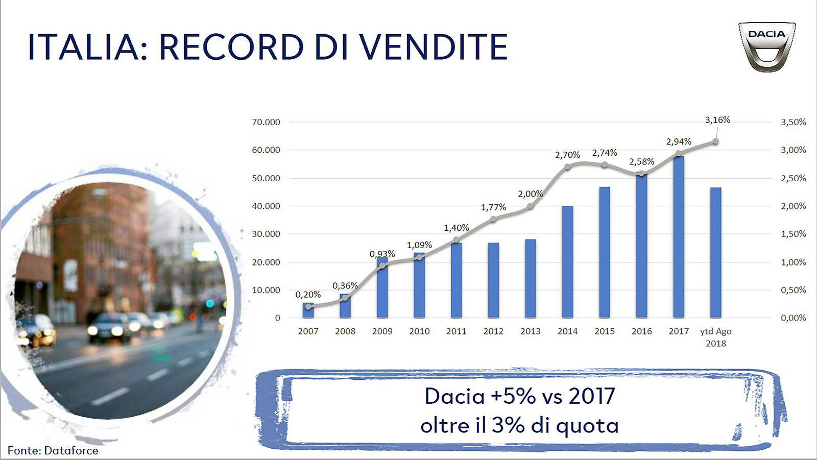 Alla presentazione stampa della Dacia Sandero Streetway, tenutasi a Roma lo scorso 26 settembre, ha preso parte anche il nuovo direttore generale di Renault Italia Xavier Martinet, che ha posto l’accento sul crescente successo europeo di Dacia, brand che lo scorso anno ha raggiunto una quota di mercato del 2,6% e a fine 2018 punta a sfiorare il 3%. Parlando più specificamente di Sandero, i dati di vendita aggiornati allo scorso luglio la vedevano al primo posto fra le vetture vendute ai privati (con Dacia nella rosa dei cinque marchi più diffusi, sempre tenendo a riferimento i clienti privati e, dunque, non anche le flotte). Quote in crescita pure in Italia, con un +5% rispetto al 2017 e un obiettivo di chiusura anno sopra il 3%, con la Sandero al quinto posto nella classifica delle vetture più vendute – anche in questo caso a clienti privati – nel suo segmento.Si parte da 7.250 euroLa Dacia Sandero Streetway nasce dall’analisi dell’evoluzione della domanda del modello (sulla breccia dal 2013), specialmente per quanto riguarda la disponibilità di accessori in passato poco richiesti in una vettura low cost e oggi, invece, divenuti irrinunciabili: per esempio i sensori di distanza posteriori, che nella Comfort sono di serie assieme al climatizzatore manuale e alla radio Dacia Plug&Play con Aux/Usb/Bluetooth e comandi al volante; a pagamento, inoltre, si possono aggiungere il navigatore con touch screen (300 euro) e la retrocamera (250 euro).