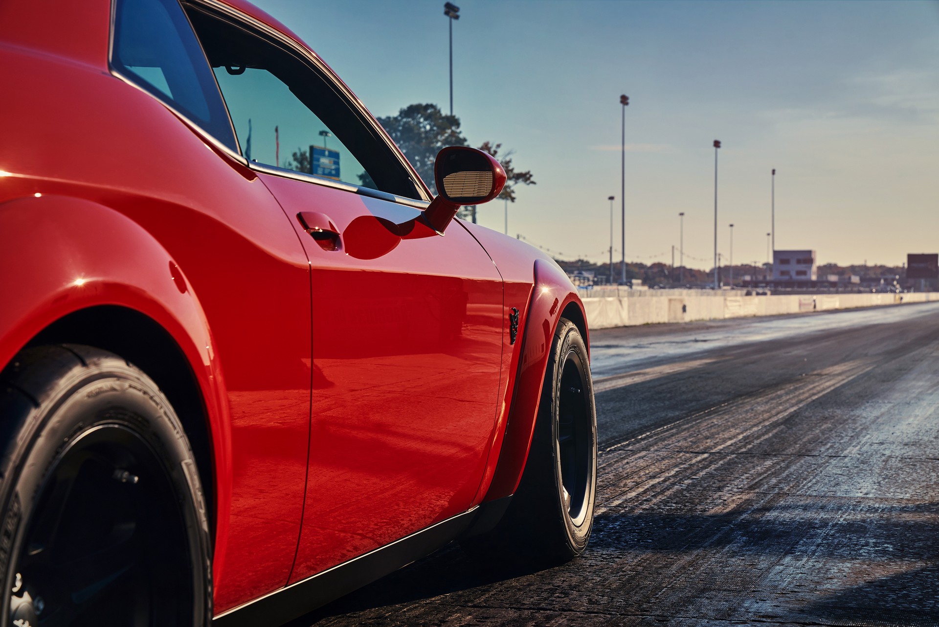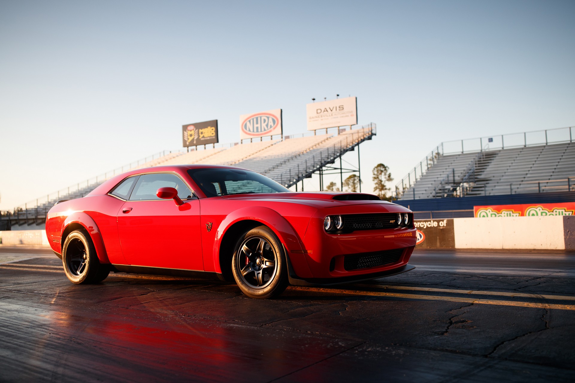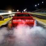 Pneumatici posteriori 315/40 R18 da drag racingNon è un’auto comune. Nasce, infatti, con l’unico obiettivo di sbriciolare gli pneumatici in accelerazione. Non a caso sono previste le funzioni Torque Reserve, per portare al massimo la pressione di sovralimentazione prima del semaforo verde, launch control e drag mode, così da attivare un setting specifico delle sospensioni per favorire il grip nello scatto da fermo. La vettura, caratterizzata dai passaruota posteriori ampliati rispetto allo standard, adotta gli pneumatici Nitto da drag racing nella misura 315/40 R18 e può essere corredata di ruote anteriori particolarmente strette, così da ridurre il peso all’avantreno. Il sedile del passeggero anteriore e il divanetto sono optional a una cifra simbolica: un dollaro.Infotainment dedicato e 3.300 esemplariLa personalizzazione della Challenger SRT Demon raggiunge l’apice qualora si analizzi l’infotainment di bordo. Il sistema UConnect con display da 8,4 pollici – di chiara derivazione FCA – prevede schermate specifiche che riportano informazioni sulle pressioni e temperature delle componenti meccaniche o che agevolano il guidatore nel programmare il perfetto setup in configurazione dragster. Alla consegna della Demon, il fortunato proprietario di uno dei 3.300 esemplari previsti verrà omaggiato di un kit, denominato Demon Crate, composto da una centralina specifica per la benzina a 100 ottani, un filtro dell’aria conico, le ruote anteriori strette e il manometro per gli pneumatici. Così da essere pronto in ogni istante per sparare i tombini nella stratosfera.