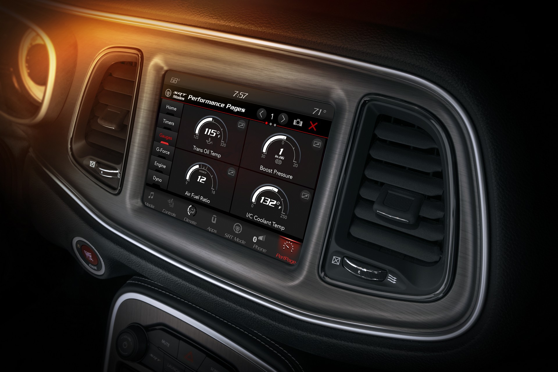 Raffreddamento di derivazione racingPer raggiungere gli 840 cv di potenza massima, il compressore Eaton passa da 1,7 a 2,7 litri di portata, pur continuando a lavorare a un regime particolarmente elevato. La pressione di sovralimentazione, al contempo, cresce da 11,6 a 14,5 psi, mentre il limitatore interviene a 6.500 anziché 6.200 giri/min. Grazie a un apposito pulsante in abitacolo è possibile utilizzare la benzina a 100 ottani, adattandovi la mappatura del propulsore, mentre l’intercooler può essere raffreddato reindirizzando il sistema di climatizzazione ed è prevista una specifica funzione di cool down dopo le brucianti accelerazioni. Il sistema d’aspirazione, le bielle e i pistoni sono specifici e rinforzati al punto da essere coperti da una garanzia di cinque anni od 80mila km. Quanto alla trasmissione automatica, la tecnologia TransBrake permette di aumentare i giri motore in partenza senza danneggiare il cambio.