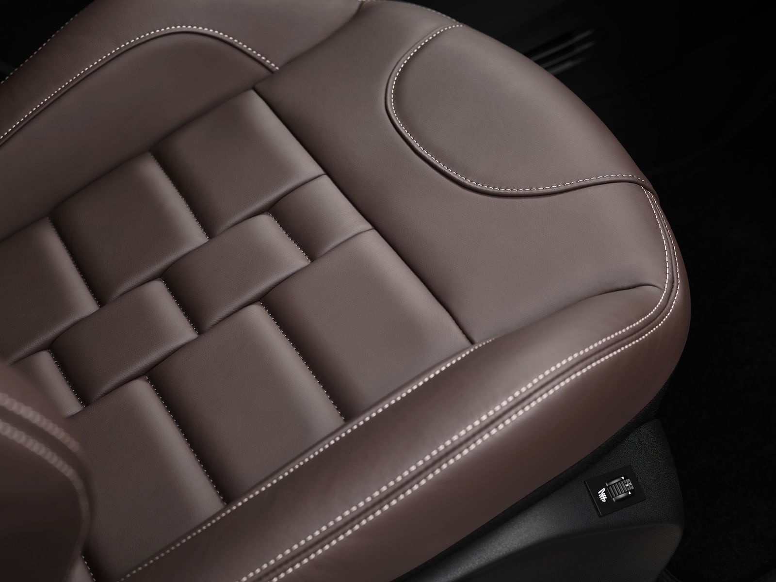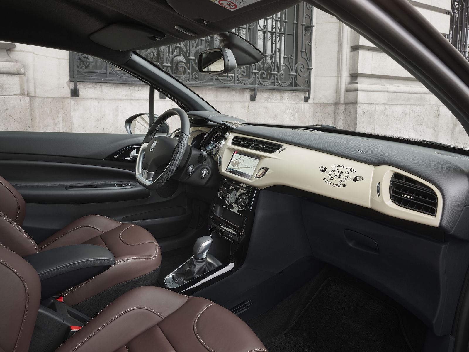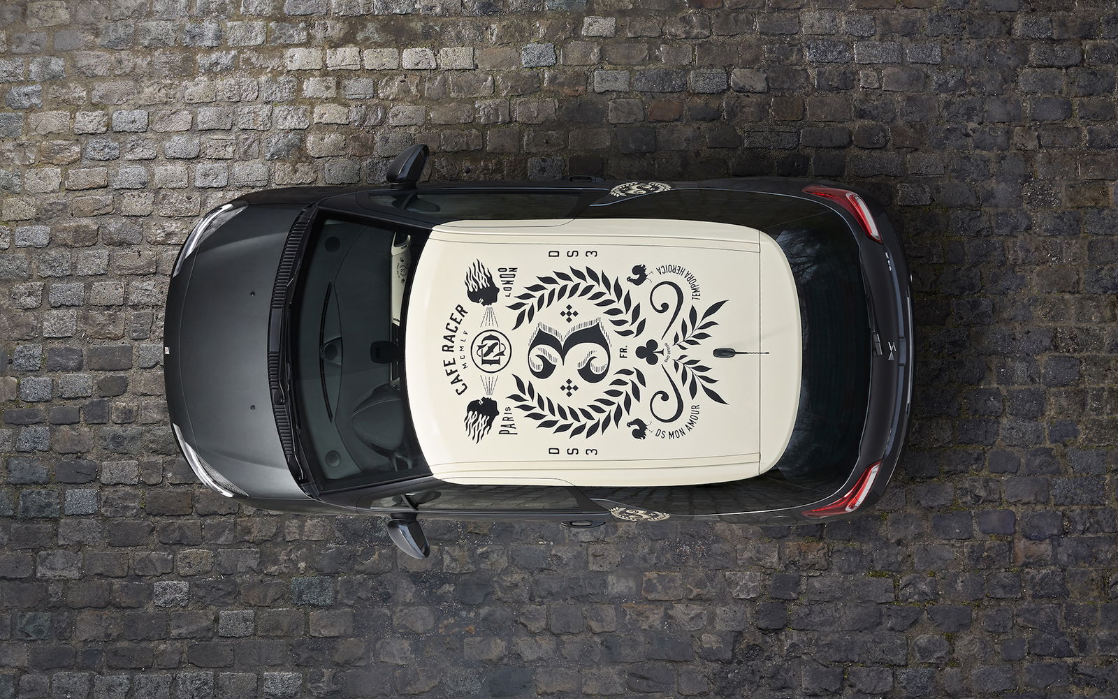 Verniciato in Crème Parthénon, il tetto ospita un’opera esclusiva, sottile riferimento al Marchio DS e al movimento Café Racer. Ma non è tutto qui. La stessa tinta si trova anche su parte superiore di portiere e fiancate, modanature sul tetto, spoiler posteriore, coprimozzi dei cerchi in lega da 17″ in nero lucido. Il tutto per creare un sottile e affascinante contrasto con le cinque colorazioni disponibili per la carrozzeria: Nero Perla, Blu Zaffiro, Verde Zaffiro, Rosso Rubino e Grigio Platinum. Non mancano badge specifici applicati su cofano e portiere, modanatura della targa cromata, maniglie e retrovisori in nero lucido, vetri posteriori oscurati.