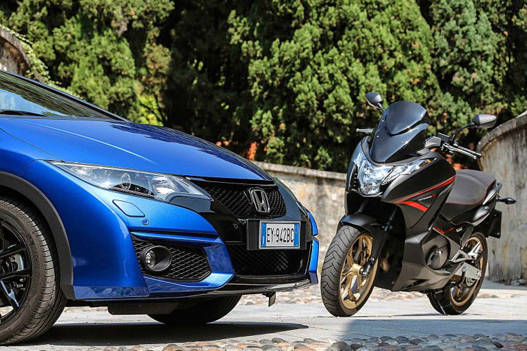 Il punto, però, è la sportività intrinseca che si percepisce alla guida. Buona coppia, non molto allungo, il 1.6 i-DTEC offre ottime prestazioni nella zona intermedia del contagiri, aiutato da un cambio preciso e corto negli innesti in linea con la tradizione Honda. Il telaio è eccellente dal punto di vista dinamico al punto che, senza arrivare alla potente Type-R, ci piacerebbe vedere sotto quel cofano la versione da 160 cv dello stesso motore. Precisa negli inserimenti, sincera nella percorrenza, gustosa nel trasmettere al driver la percezione di quello che accade sotto le ruote, la Civic riesce ad essere sportiva senza aver bisogno di cavalli, riesce a gratificare chi la guida senza essere aggressiva per forza. Con la Civic viaggi, scendi dopo 500 km no-stop per nulla affaticato e ti diverti: riesce ad essere più efficace di auto molto più pretenziose, almeno nell’aspetto. Insomma raggiunge un compromesso eccellente tra sportività e comfort.Lo stesso possiamo dire per il moto-scooter, capace di soddisfare anche chi non chiede solo di essere trasportato da un punto A ad un punto B ma pretende di farlo divertendosi e con dinamismo. Con l’allestimento Sport si rinuncia a una certa dose di protezione: il cupolino basso lascia più esposti all’aria ma enfatizza il carattere dell’Integra, che non molla il colpo quando la strada inizia ad attorcigliarsi su se stessa. Sfodera un buon bilanciamento, nonché angoli di piega e velocità di percorrenza in curva che con gli scooter hanno ben poco a che vedere. Ed è sportivo al punto che se ci si fa prendere la mano si inizia a staccare e non a frenare, immaginando due dischi anteriori al posto del singolo che è montato. Di sicuro l’appellativo “sport” non è fuori luogo, anzi…