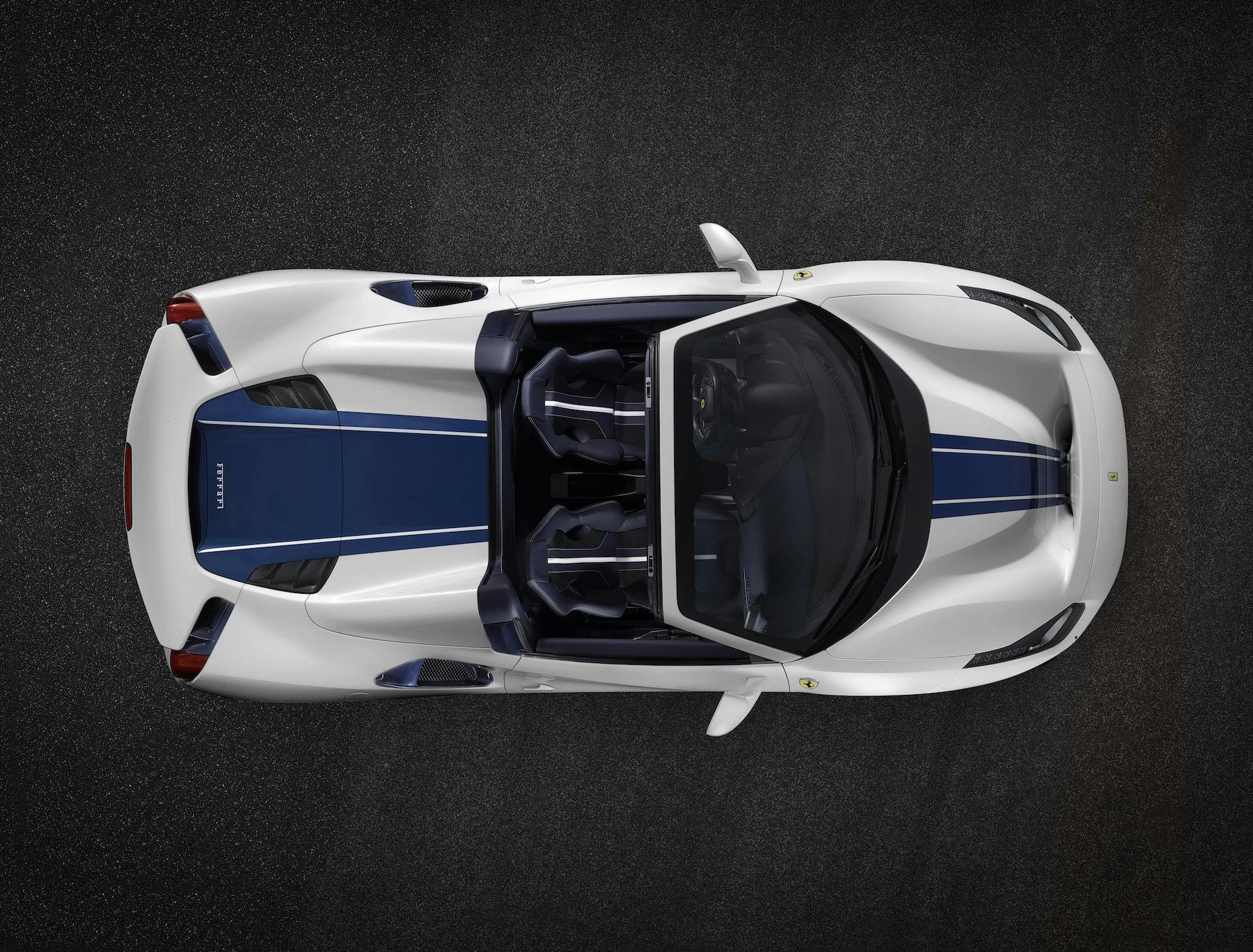 Vestito attillatoLa base di partenza è stata – giocoforza – la 488 Pista, che a sua volta trasferisce su strada l’esperienza maturata sui tracciati di tutto il mondo dalla 488 Challenge e dalla 488 GTE. Da fuori a colpire è la banda blu a sezione crescente, che aumenta verso la coda e dà l’idea visiva del flusso d’aria che scorre. E poi ci sono i cerchi diamantati a stella 20”, che si ispirano alla tradizione delle berlinette Ferrari a motore posteriore-centrale. Volendo, si possono avere i cerchi monolitici in fibra di carbonio, che pesano il 20% in meno rispetto a quelli forgiati di serie.