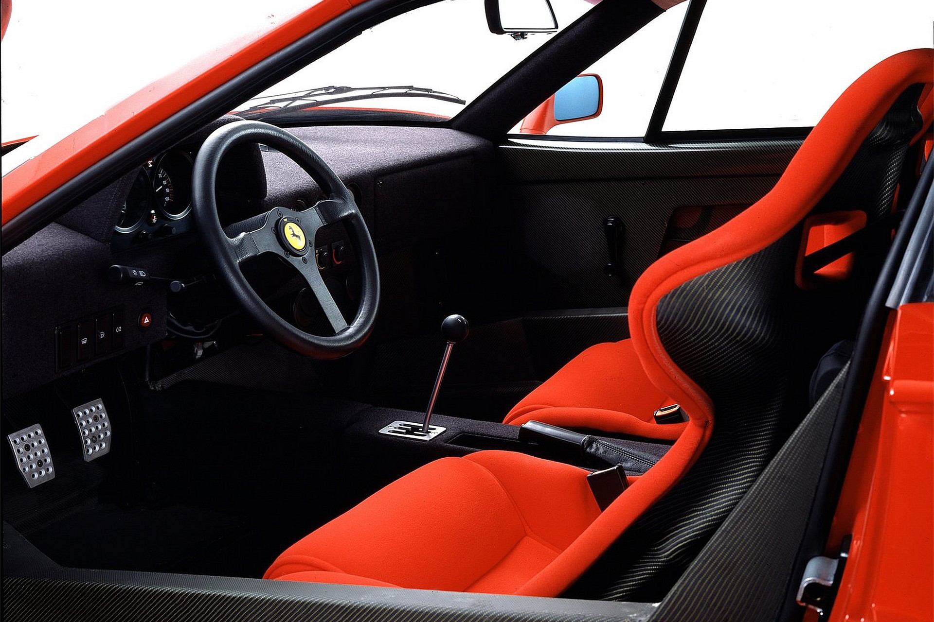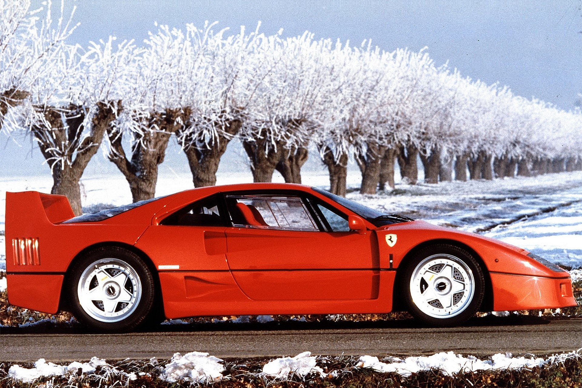Il cambio, manuale a 5 rapporti in blocco con il motore, si accompagnava al differenziale autobloccante. A richiesta era disponibile una trasmissione sportiva priva di sincronizzatori, dedicata ai clienti che desideravano portare all’estremo il concetto di auto da corsa utilizzabile su strada. Degli eroi. Fu l’ultima vettura “battezzata” da Enzo Ferrari. Il Grande Vecchio sarebbe scomparso nell’agosto del 1988. Nel corso del periodo di produzione furono introdotte sospensioni ad altezza regolabile, munite di controllo elettronico, e la vettura restò a catalogo sino al 1992. Ebbe un’erede: l’F50. Epica anch’essa, ma non altrettanto rabbiosa. Oggi esistono supercar più performanti. Più brutali, e affascinanti, nessuna.
