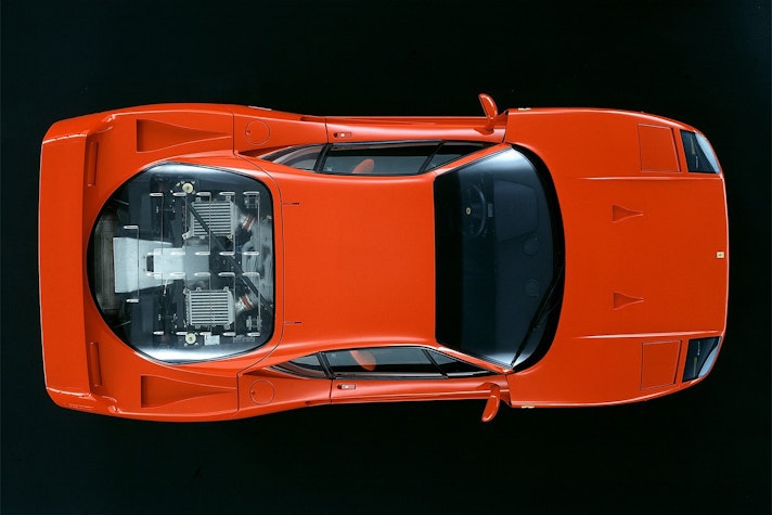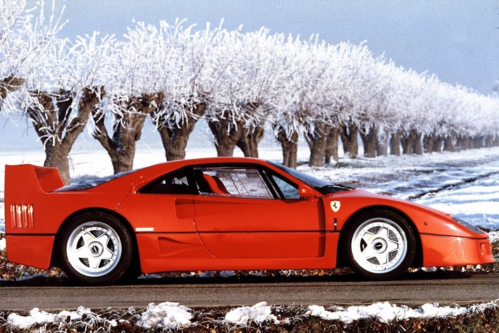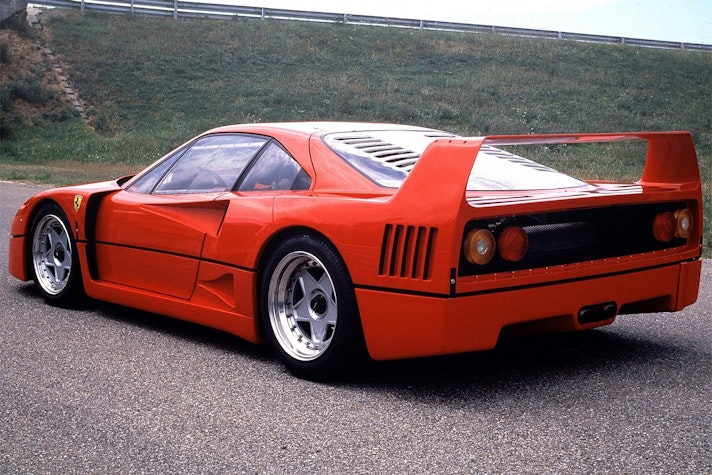 Il cambio, manuale a 5 rapporti in blocco con il motore, si accompagnava al differenziale autobloccante. A richiesta era disponibile una trasmissione sportiva priva di sincronizzatori, dedicata ai clienti che desideravano portare all’estremo il concetto di auto da corsa utilizzabile su strada. Degli eroi. Fu l’ultima vettura “battezzata” da Enzo Ferrari. Il Grande Vecchio sarebbe scomparso nell’agosto del 1988. Nel corso del periodo di produzione furono introdotte sospensioni ad altezza regolabile, munite di controllo elettronico, e la vettura restò a catalogo sino al 1992. Ebbe un’erede: l’F50. Epica anch’essa, ma non altrettanto rabbiosa. Oggi esistono supercar più performanti. Più brutali, e affascinanti, nessuna.