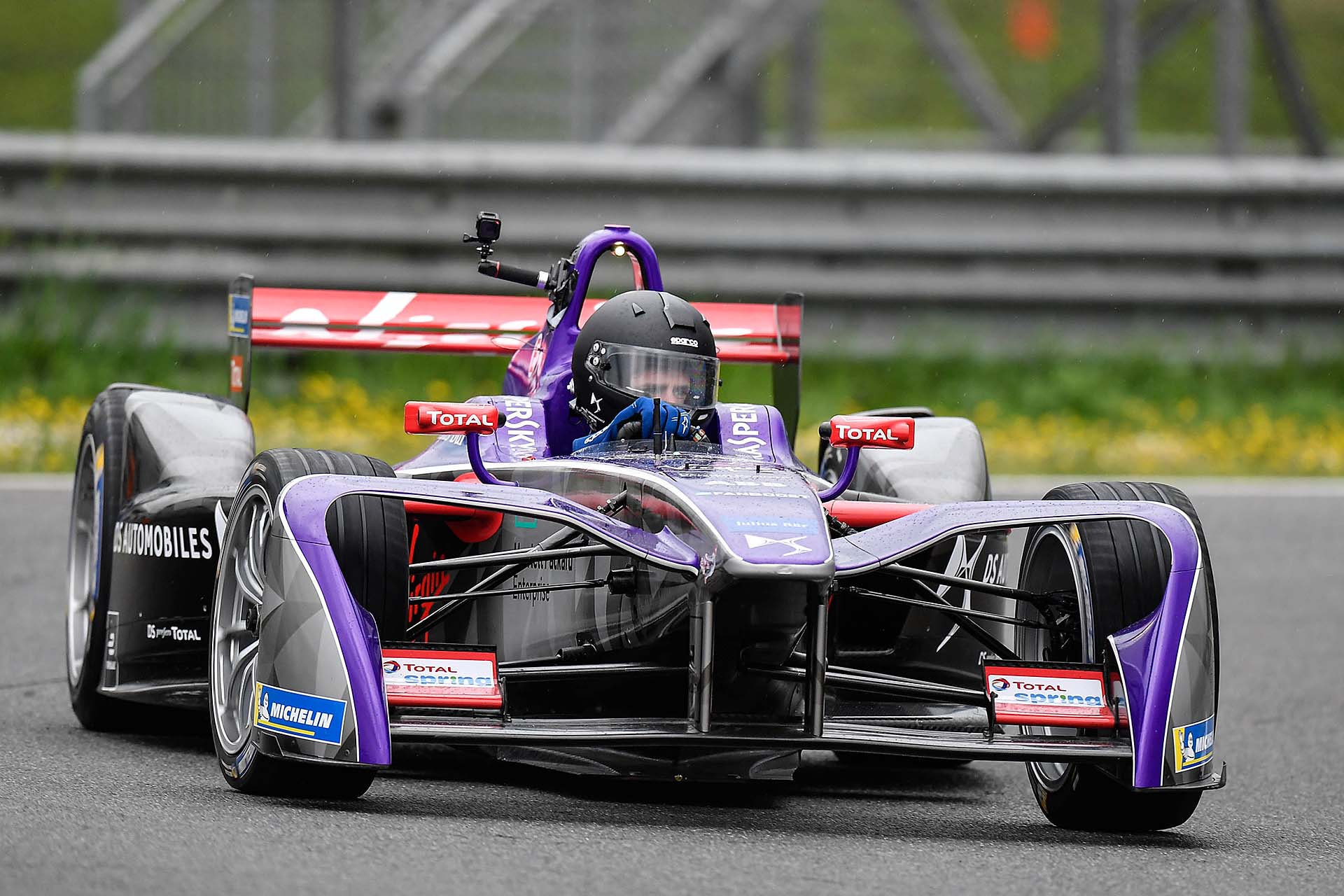LIVE Gare e spirito ecologico, due concetti fino a pochi anni fa più in disaccordo dei partiti che occupano il Parlamento italiano. Da qualche anno, invece, sembra sbocciato l’amore. Tutto questo lo si deve al Campionato di Formula E. Giunto quest’anno alla quarta stagione, è la prima competizione organizzata dalla FIA con monoposto ad trazione puramente elettrica. Pensa male chi le immagina come noiose auto filtrate dai controlli elettronici: di elettronica in aiuto al pilota, qui, ce n’è ben poca, come ci ha fatto scoprire il DS Virgin Racing team durante un esclusivo test sul circuito umbro di Magione.L’eco piace?A voler essere sinceri, il Campionato Formula E è ancora indigesto a molti appassionati, principalmente per l’insolita associazione racing e green e perchè… non c’è rumore. Eppure, molti grossi investitori e aziende automobilistiche ci sono già dentro con entrambe le scarpe. Tra questi c’è anche DS che in campo ha schierato il proprio reparto specializzato DS Performance. Con queste premesse, la Formula E offre spunti oggettivamente interessanti: l’idea è un campionato sì competitivo ma anche sostenibile. Ecco perché si corre esclusivamente su circuiti ricavati all’interno di grandi metropoli (11, tra cui anche Roma da quest’anno, tappa vinta proprio dal Team DS Virgin), veri punti critici del pianeta quanto a inquinamento.Due regoletteLe regole seguono la sostenibilità: le batterie si caricano con elettricità proveniente da fonti esclusivamente rinnovabili, i piloti possono allenarsi solo al simulatore e nei dintorni del circuito, durante l’evento, non sono previsti parcheggi: meglio arrivare con i mezzi. La potenza è limitata a 180 kW durante la gara, 200 kW in qualifica. Una chicca: i piloti con un alto indice di gradimento (si vota online) possono usufruire di un FanBoost, un surplus di potenza da utilizzare durante la gara nel momento più propizio e per la durata di pochi secondi.Numeri20 piloti, 10 team, 7 costruttori: questi i numeri della Formula E, Campionato che ha regole ben precise. Senza addentrarci nel sistema di punteggio, identico ad altre competizioni, tutto l’evento dura quasi sempre un giorno (solitamente il sabato), dalle prove libere al podio. Gran parte della meccanica delle monoposto è comune a tutti i team: telaio (monoscocca in carbonio fornito da Dallara), pacco batterie, ruote (gomme Michelin Pilot Sport EV 2 con disegno stradale e mescola soft, in misura 245/40R18 davanti e 305/40R18 dietro), schema sospensioni (push rod), freni in carbonio, forme e volumi della carrozzeria. Quello che il team può (e deve) sviluppare è la parte posteriore.Ma con chi vai?Con queste regole, il DS Virgin Racing team è entrato nel Campionato Formula E con l’ambizioso obiettivo di portarsi a casa titolo piloti e costruttori. Per i primi, si sono affidati a Sam Bird (vincitore della tappa romana) e Alex Lynn, piloti giovani ma già in possesso di un bel curriculum agonistico. Come tutti i piloti che partecipano al campionato, anche a loro tocca dialogare con il proprio team attraverso una radio Wi-Fi: strategie, idee per recuperare energia (tutte le monoposto hanno il sistema di rigenerazione in frenata, azionabile dal pilota nei momenti più opportuni), le ragioni per cui il team può mettersi in contatto con il pilota sono molteplici e tutte valide.Sviluppo di un certo livelloSulla propria Formula E, il reparto DS Performance ha lavorato sodo per mettere a punto il powertrain, composto dal singolo motore (alcuni ne utilizzano più di uno) e dal cambio (qui a tre rapporti), e il cosiddetto bellhousing, di fatto un involucro in carbonio che, oltre a contenere il powertrain, collega il mastodontico pacco batterie (circa 190 kg per 28 kWh) alle sospensioni e ha quindi funzione portante. Anche l’impianto di raffreddamento del motore è proprietario, non quello delle batterie. Risultato? La Formula E DS Virgin Racing team pesa 880 kg, esprime 200 kW (come da regolamento), accelera da 0 a 100 in 3,7 secondi e fino a circa 225 km/h. RIDE Pista di Magione, ore 11 di un giorno freddo e piovoso (manco a dirlo) di metà Aprile. Un piccolo stuolo di tecnici sta lavorando con silenziosa professionalità sulla Formula E DS Virgin Racing team che guideremo oggi. Io e pochi altri fortunati. Ci sono concessi un paio di giri per imparare la pista e trovare feeling con questa furia elettrica, tutta carbonio plasmato e ali aerodinamiche. Poi stop di pochi minuti, piccolo consulto con i tecnici e via, altri tre giri lanciati per vedere se, effettivamente, anche un’auto elettrica può regalare un brivido.Prova bagnata…A Giove Pluvio non manca il senso dell’ironia: dopo una lista di raccomandazioni piuttosto intimidatoria (“è l’auto con cui facciamo i test quindi occhio, i freni in carbonio vanno portati in temperatura”, ecc…), guardo fuori dal box e… sì, pioviggina. Questo mi rende di fatto la prima persona al mondo a guidare la Formula E DS Virgin Racing su pista bagnata, dato che fino a oggi nessuna gara è mai stata disputata sotto la pioggia. A qualcuno prima o poi doveva pur toccare…Piccola piccolaDevo essere sincero: sarà che la mia esperienza con le monoposto si limita alle ore spese con la PlayStation, ma è difficile immaginare la sensazione di claustrofobia una volta accomodati all’interno della Formula E DS Virgin Racing. Il volante, che ha una moltitudine di pulsanti (per mia fortuna, oggi quasi tutti disattivati), è a 20 centimetri scarsi di distanza dal naso, le gambe e il busto sono immobilizzati, l’altezza da terra è inesistente. Gli unici movimenti concessi sono la rotazione delle mani e un modesto su e giù ai piedi. Fine. I go kart a noleggio, in confronto, sono delle comode berline.Animale da pistaQualche auto da corsa l’ho provata, anche piuttosto spinta, eppure la monoposto a ruote scoperte m’incute una certa fifa, mentre percorro a passo d’uomo la corsia dei box e m’infilo nel rettiline