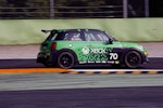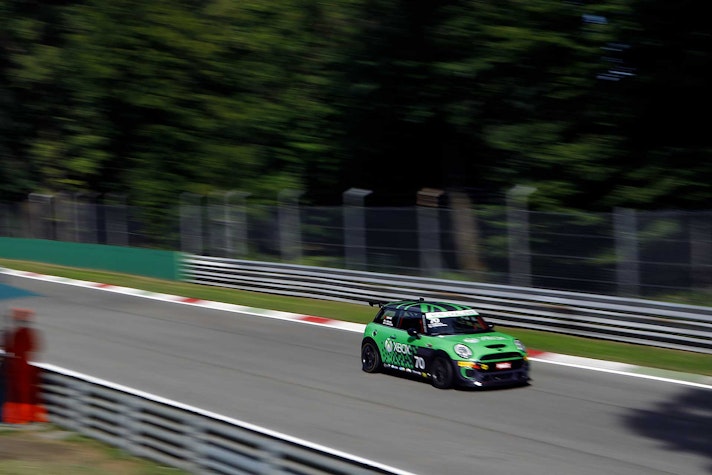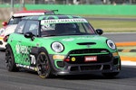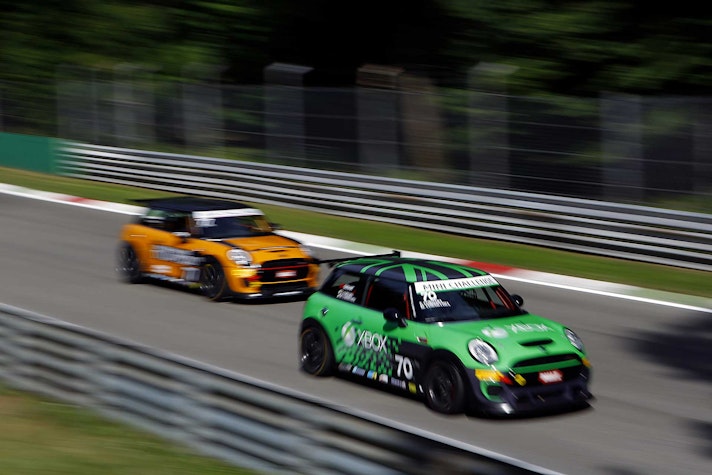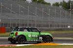 Anche se sei l’uomo più tranquillo del mondo appena ti sei calato nell’abitacolo l’adrenalina sale. Anche la vestizione è una specie di rito indosso tutto l’underwear ignifugo: calze, calzamaglia, maglia, sottocasco. Poi la tuta, le scarpe il casco integrale e l’Hans, il collare che evita movimenti eccessivi del collo in caso di incidente. Ah come invidio i piloti di auto! Il loro “abito” è leggero lascia molto liberi i movimenti, tutt’altra vita rispetto alle pesanti tute in pelle che usiamo in moto. Capisco presto, però, che c’è anche un rovescio della medaglia. La preparazione per l’ingresso pista avviene con ampio anticipo i meccanici di legano con le cinture a 4 punti che ti “saldano” al sedile. E se fuori nei giorni di gara il termometro supera i 30 gradi, dentro ce ne sono 50! Un caldo infernale che ti prosciuga letteralmente. Non è faticoso guidare queste auto, almeno non finché non ne cerchi il limite. Non è faticoso fisicamente, ma lo è mentalmente. Perché la MINI è una macchina che va guidata, amichevolissima finché non spingi davvero, inizia a diventare un po’ “carogna” quando la aggredisci soprattutto in frenata. E perché una macchina così è davvero molto simile per filosofia a una moto di piccola cilindrata: vuole scorrevolezza, precisione, se sbagli l’uscita da una variante e perderai un mare di tempo portandoti dietro l’errore fino alla staccata successiva.FRENI SUPERLa presenza dell’ABS mi rassicura in prima variante mi produco in pestoni sul freno che mi sembra di voler sfondare la scocca, anche quando sembra di arrivare lungo riesco sempre a inserire l’auto in curva, anche se ovviamente non sono efficacissimo. Ma non è tutto così facile, in staccata la JCW scarica il posteriore e parte “secca”, richiedendo continue correzioni mentre sei impegnato anche a scalare con un cambio che non è il massimo della precisione negli innesti e che più di una volta mi ha fatto tribolare (più in salita che in scalata a dire il vero). E poi come tutte le auto a trazione anteriore richiede una certa attenzione per scaldare bene le gomme posteriori prima di spingere davvero, altrimenti ritrovarsi parcheggiati in contromano è un attimo.PERCORRENZA DA SOGNOPerò adoro la sua velocità di percorrenza e la reattività nei velici cambi di direzione delle varianti dove è davvero repentina e non accusa ritardi. Pensavo che i lunghi rettilinei di Monza fossero un’agonia, invece la MINI se li mangia piuttosto in fretta dandomi anche la soddisfazione di avere la migliore velocità della categoria LITE: 221 km/h alla staccata della prima variante, segno che esco bene dalla Parabolica e soprattutto stacco piuttosto avanti. Le prove ufficiali si svolgono il venerdì pomeriggio, mi montano gomme nuove davanti (dietro lavorano così poco che non serve). Sono venuto qui per vivere questa esperienza senza particolari aspettative o velleità, ma il gusto di guidare la macchina nelle libere mi ha caricato a molla e ovviamente se unisci una pista un cronometro e una classifica nessuno è immune dal morbo della competizione.PROVA