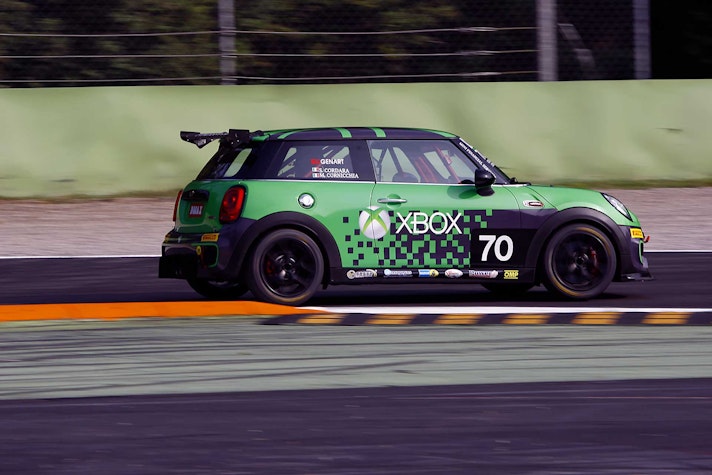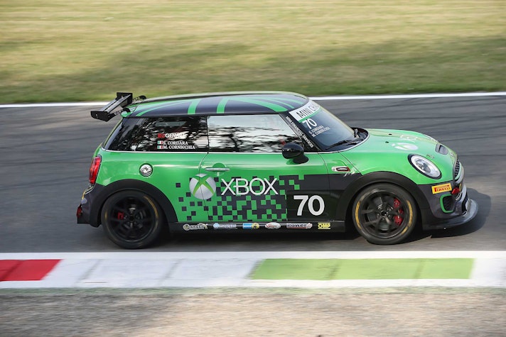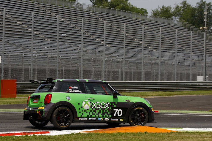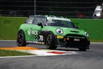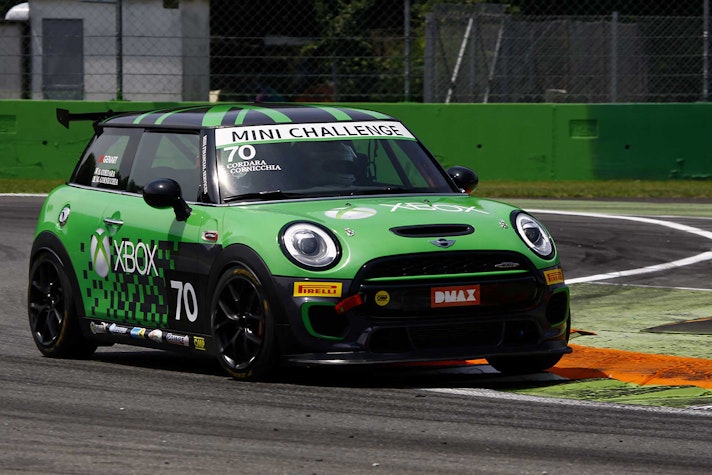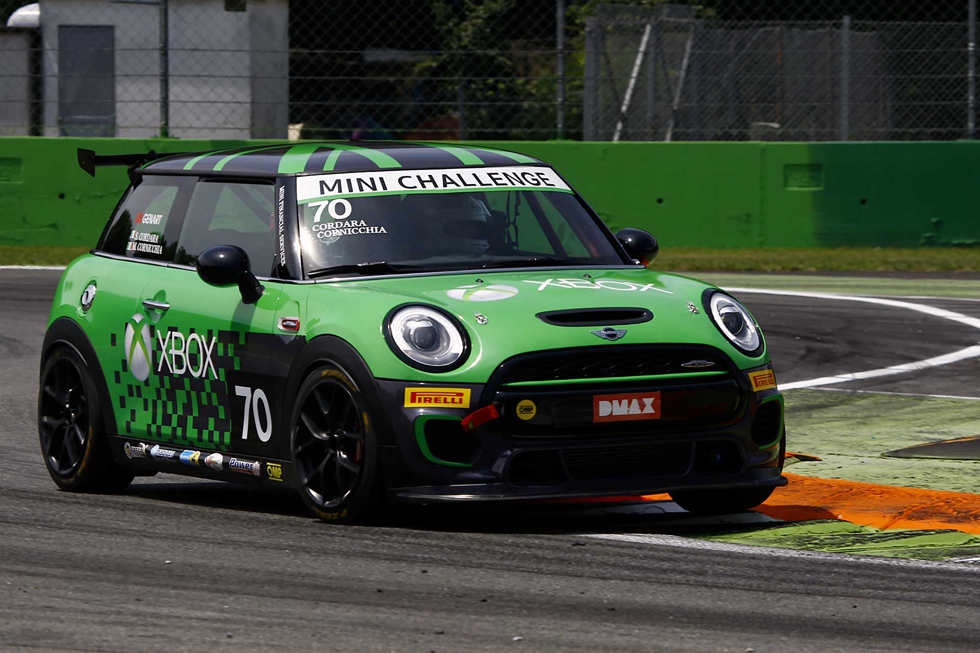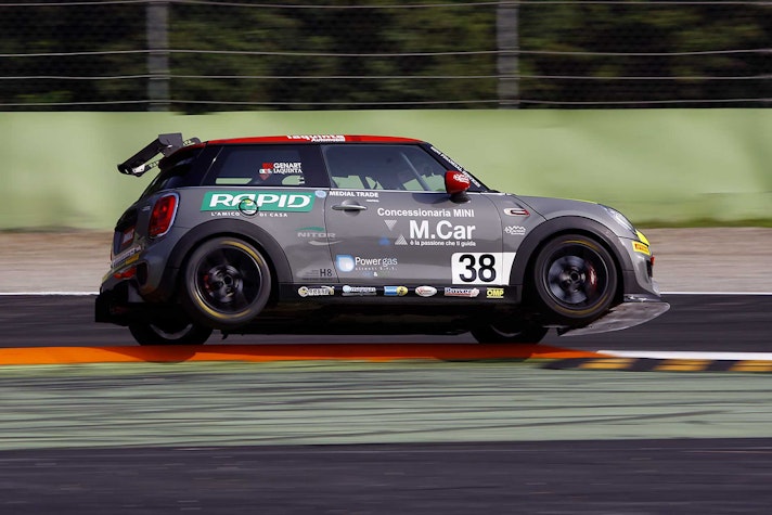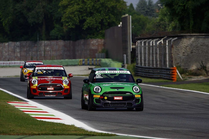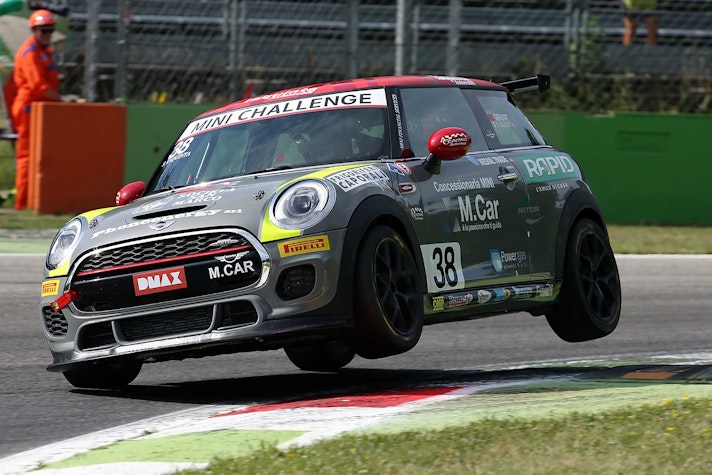 Mai avuta la licenza per correre in auto, mai avuto nemmeno l’esigenza di farla a dire il vero, ma sai com’è, con le visite mediche già effettuate e la prospettiva di mettermi alla prova al volante di un’auto da corsa non ci è voluto molto a convincermi. Auto da corsa ne ho guidate un po’, Rally e pista l’ho fatto in quei test che le Case organizzano per noi “giornalai” facendoci assaporare per qualche giro il dolce sapore dello zuccherino che ti lascia li con la bavetta. Ma una gara è una cosa differente. E forse per convincermi a tradire le moto serviva un’auto un po’ speciale. Un’auto che come dico io “fa un po’ la moto” perché la MINI JCW, corta, reattiva e agile qualche cromosoma da moto secondo me ce l’ha sparso per la carrozzeria.CURIOSITÀParto quindi per Monza con una grande curiosità. Più che altro parto anche pronto a prendere una gran paga, perché per quanto io possa essere assuefatto alla velocità e per quanto possa essere capace di guidare un’auto sono a digiuno di tutte quelle malizie che servono per andare veramente forte su quattro ruote. Almeno la pista la conosco: Monza, il tempio della velocità, 4 rettilinei lunghissimi uniti da 2 varianti divide dalla Curva Grande e poi Lesmo, Ascari, e Parabolica. Una pista dove prima di tutto servono una marea di cavalli per andar forte, ma serve anche essere a conoscenza dei “trucchi”. Divido la MINI con un collega il che di fatto dimezza la permanenza in pista, limitandola a pochi giri (circa 5) per sessione, questo per quel che riguarda prove libere e ufficiali perché poi la gara sarà tutta per me, visto che si corre una manche al sabato e una la domenica.CORSO ACCELERATOMeglio quindi lasciar perdere la fase del corteggiamento e fare conoscenza in fretta con la MINI che è allestita per la categoria Lite, la più vicina alla serie. In pratica, fosse una moto potremmo dire che la mia MINI JCW è una “stock” per correre con un costo calmierato (circa 36.000 euro per correre tutta la stagione). Il motore è assolutamente standard ed eroga 231 cv, la macchina viene però alleggerita di tutto il superfluo dimagrendo di circa un quintale, e poi viene allestita per correre con il classico rollbar sedile e pedaliera racing, impianto antincendio. Sospensioni (regolabili) ruote (da 20 pollici) e gomme (slick Pirelli) sono parte dell’allestimento, ma poi c’è poco di più: la scocca è assolutamente di serie e a conferma di quanto è rigido il telaio MINI non usa nemmeno una barra duomi aggiuntiva per cercare ulteriore rigidità.TUTTO DI SERIE E CAMBIO MANUALE https://youtu.be/qGuDbHkNI-cE, sorpresa delle sorprese è di serie perfino l’impianto frenante! Dischi, pompa, pinze, tutto come sulla JCW che trovate dal concessionario, con l’eccezione delle pastiglie con mescola racing. Per la categoria Lite l’organizzazione è andata sul romantico per quel che riguarda il cambio, affidandosi a un classico cambio manuale a sei rapporti. Niente “paddle” o sequenziali (quello lo usa la PRO che ha anche 30 cv in più ma che è anche più costosa), qui si va all’antica con frizione e leva del cambio, e come vedremo non è facile… Le procedure di rito prevedono l’adattamento del sedile e della posizione di guida, cerchiamo e troviamo presto un compromesso tra me e il mio compagno di squadra. Il sedile è montato bassissimo sei letteralmente affossato nell’abitacolo per abbassare al massimo il baricentro dell’auto, volante minuto con rivestimento in alcantara e pedaliera d’alluminio rendono tutto molto racing. La strumentazione è di serie e non mi dispiacerebbe che fosse aggiunto un LED di cambiata perché il contagiri non è così visibile.IRRESISTIBILE