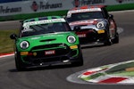 La partenza lanciata è un’altra esperienza da raccontare: un giro di allineamento dietro alla safety car che si toglie di mezzo all’altezza della Ascari, poi l’ultimo tratto di pista si percorre a velocità ridotta ed è un gioco di nervi e strategie. Devi essere bravo anche a non perdere di vista il semaforo nascosto da chi ti precede per vedere quando scatta il verde. Capisco solo dopo perché il pilota che mi era a fianco ha rallentato allontanandosi dal gruppo. Allo scattare del verde lui è già lanciato come una fionda e mi passa come fossi fermo. A me il giochetto riesce solo a metà, sono intruppato ma nemmeno troppo. Alla prima variante c’è più traffico che in tangenziale all’ora di punta, mi chiedo come sia possibile che nessuno si sia toccato, poi il serpentone si allunga e io capisco che la situazione è diversa dal giorno delle prove. C’è molto meno grip, l’auto sottosterza di più; forse (nonostante i ripetuti zig zag nel giro di allineamento) le gomme non sono ancora calde a dovere, forse non lo è l’asfalto (in particolare sotto il bosco) o forse la categoria precedente che ha corso usando gomme stradali ha lasciato sull’asfalto gomma incompatibile con le nostre slick. Fattostà che si scivola, molto. Infatti, all’Ascari arriva il primo botto, una MINI parte secca dietro (ricordate cosa vi dicevo sullo scaldare le gomme posteriori?) e si accartoccia contro il muro esterno: safety car. Ci rimettiamo tutti in fila a velocità moderata, le gomme tornano fredde.Servono due giri perché il carro attrezzi liberi l’area, quando ripartiamo sono in coda al plotone delle MINI, arriviamo all’Ascari altro botto, altra MNI contro al muro. Pure io rischio, con l’auto che parte secca e mi fa rimbalzare sui cordoli strappandomi quasi il volante dalle mani. Di nuovo in coda come per andare al mare il sabato mattina, questa volta per tre giri, di nuovo gomme fredde. Ripartiamo e faccio tempo a sbagliare una marcia, uscire un po’ largo alla Roggia incazzarmi con me stesso per quanto sto sbagliando ma anche a tenere con i denti il plotoncino di Mini LITE che mi precedono. Quello che perdo nelle varianti (evidentemente non sono il mio forte) lo recupero tra Ascari e Parabolica. Sono li, attaccato. Dai che ci divertiamo! Altro botto, questa volta in parabolica. Altra Safety Car l’ultima della gara che termina mestamente al parco chiuso. 8 giri in tutto di cui sei percorsi con Safety Car mi lasciano in bocca un sapore piuttosto amaro per non aver visto dove realmente sarei potuto arrivare. Ciò non toglie che l’esperienza sia stata eccezionale grazie anche a meccanici straordinari e che, ovviamente, io abbia già voglia di riprovarci. That’s racing baby…