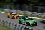 4 giri, lanciati a tutta: non c’è fatica fisica (a parte il caldo mostruoso che ti toglie il fiato) ma una concentrazione estrema. In prima variante arrivo con l’auto che si muove come un’anguilla, mi infilo, percorro, esco, curvone a tutta fino alla sesta, altra staccata micidiale che mi fa domandare come diavolo fanno freni di serie a resistere così, scorro bene alla Roggia metto due ruote sul cordolo e sento una mitragliata di sassi sulla carrozzeria, la Lesmo 1 si fa in quarta, tutta scorrevolezza lasciando allargare l’auto fino all’erba sintetica ma facendo attenzione che almeno una ruota resti in pista (sull’asfalto) pena la cancellazione del tempo. Mi rendo conto che la mia anima motociclistica mi rende difficile far scorrere l’auto così. Per me i cordoli sono il demonio, ma quando vedo i ragazzi della Pro (che mi passano facilmente vista la differenza di prestazioni) sconfinare spesso e volentieri e tagliare la Lesmo 2 come se ci fosse un altro pezzo di pista, imparo in fretta. Serraglio, Ascari qui mi sento bene, taglio bene in ingresso, cambio direzione in quarta quinta in uscita. Questo settore (che finisce al traguardo) è quello che mi viene meglio. Giro dopo giro imparo a conoscere meglio le reazioni della piccola MINI, il movimento della coda in ingresso, se ben gestito, diventa quasi un alleato che ti aiuta a indirizzare l’auto. 4 giri il tempo scende e sto migliorando ancora quando vedo il cartello dai box con una “P”. Interpreto “PIT” ed esco, invece i meccanici mi volevano indicare solo la posizione. Perdo così il mio giro migliore e ora devo lasciare l’auto al mio compagno. Sono un vero idiota. Ma non mi lamento: il tempo di 2.14.9 mi piazza al quarto posto tra le LITE con il terzo e il secondo a pochi decimi. Irraggiungibile Giorgi il primo della mia categoria che ha dato 2 secondi al secondo… forse ha corso su un’altra pista. Lasciamo perdere le PRO che invece sembrano fare un altro sport con tempi 7 secondi al giro più veloci. Scendo comunque galvanizzato, certo di potermela giocare in gara. Ma come sempre avviene, è meglio galvanizzarsi dopo la gara piuttosto che dopo le prove…GARALa gara, infatti, è un’altra cosa. Parto con la posizione in griglia conquistata dal mio compagno nella gara del sabato: tredicesimo a ridosso di tutte le MINI LITE ma con 5 PRO finite dietro per problemi/penalizzazioni rimediate durante la gara del sabato. La mattina della domenica fa fresco, il vento dei balcani ha fatto scendere la temperatura di 10 gradi. Sono convinto che sarà meglio, ma scoprirò che non è proprio così.PARTENZA LANCIATA