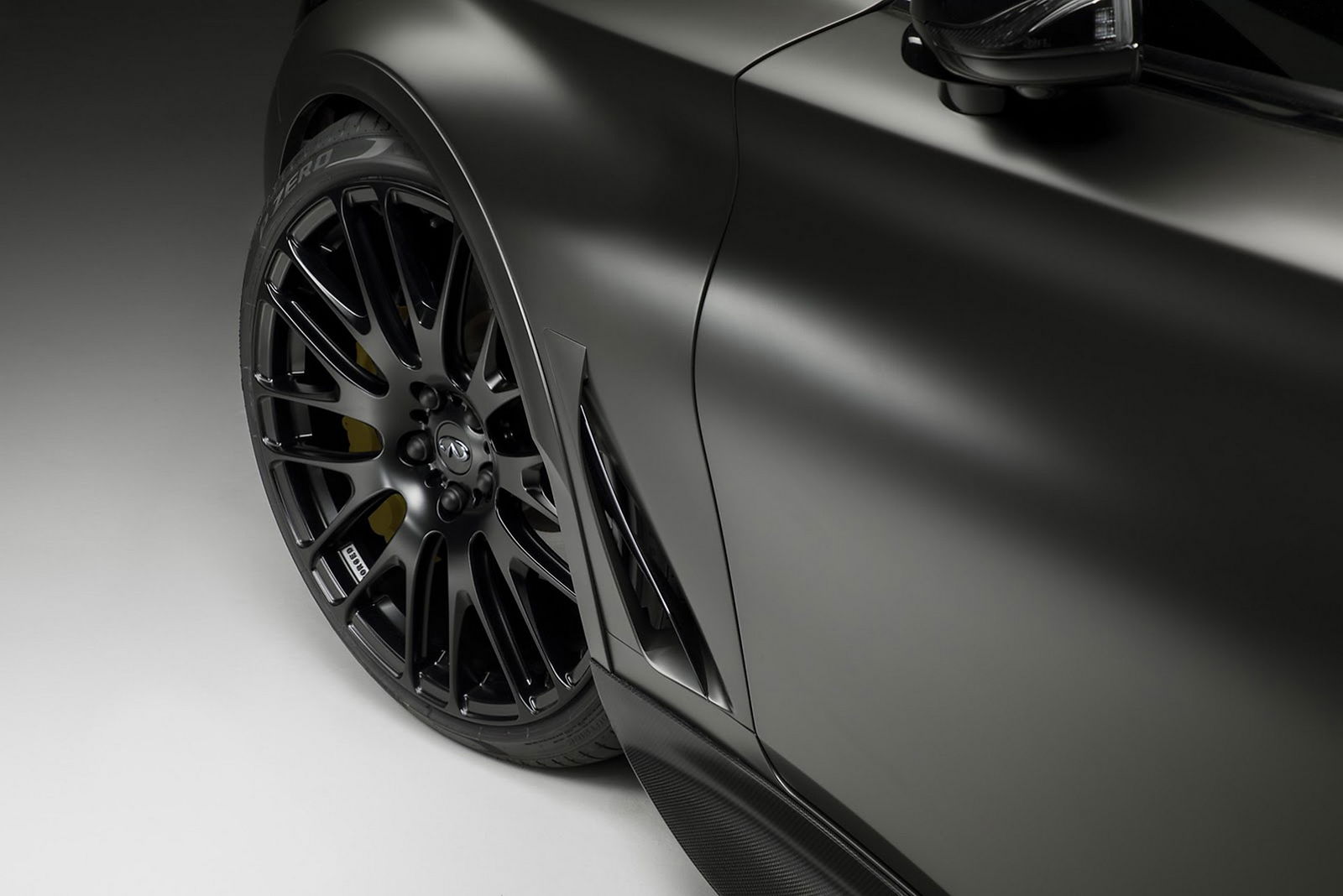 500 cv grazie all’ERS e al V6 3.0 biturboLa Project Black S porta al debutto la prima applicazione stradale del sistema ibrido ERS derivato dall’esperienza Infiniti in Formula 1. Dal V6 3.0 biturbo benzina della Q60, accreditato in origine di 405 cv e 475 Nm di coppia, viene così “spremuto” un surplus di potenza del 25%, raggiungendo quota 500 cv. La tecnologia ERS, nel dettaglio, recupera l’energia termica generata dai gas di scarico e quella cinetica prodotta in frenata, accumulandola in apposite batterie agli ioni di litio a scarica rapida, in grado di restituire immediatamente la spinta extra richiesta. Una prima assoluta per un’auto omologata per la circolazione ordinaria.Passaruota ampliati e cerchi da 21 polliciSe da un lato la tecnica è raffinata, dall’altro l’estetica della Project Black S è tutt’altro che anonima. La coupé giapponese, caratterizzata da un abitacolo in configurazione 2+2 e da una piattaforma specifica che, rispetto all’antenata G37, porta in dote baricentro ribassato e carreggiate allargate, beneficia di una cura radicale a livello aerodinamico. Il centro design Infiniti di Londra ha infatti sviluppato un body kit in carbonio per ottimizzare i flussi di raffreddamento e la deportanza, mentre i cerchi in lega da 21 pollici hanno imposto un ulteriore ampliamento dei passaruota.