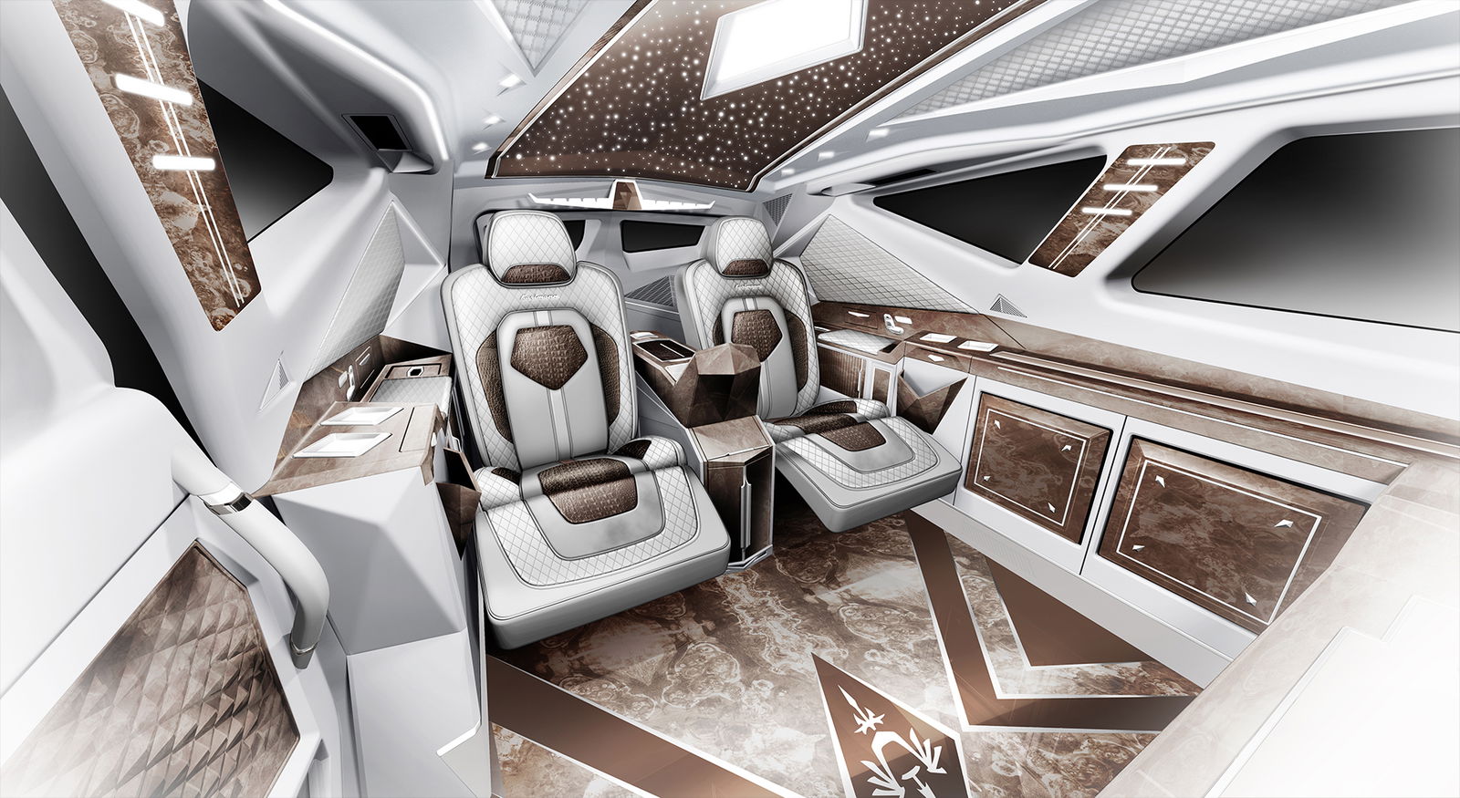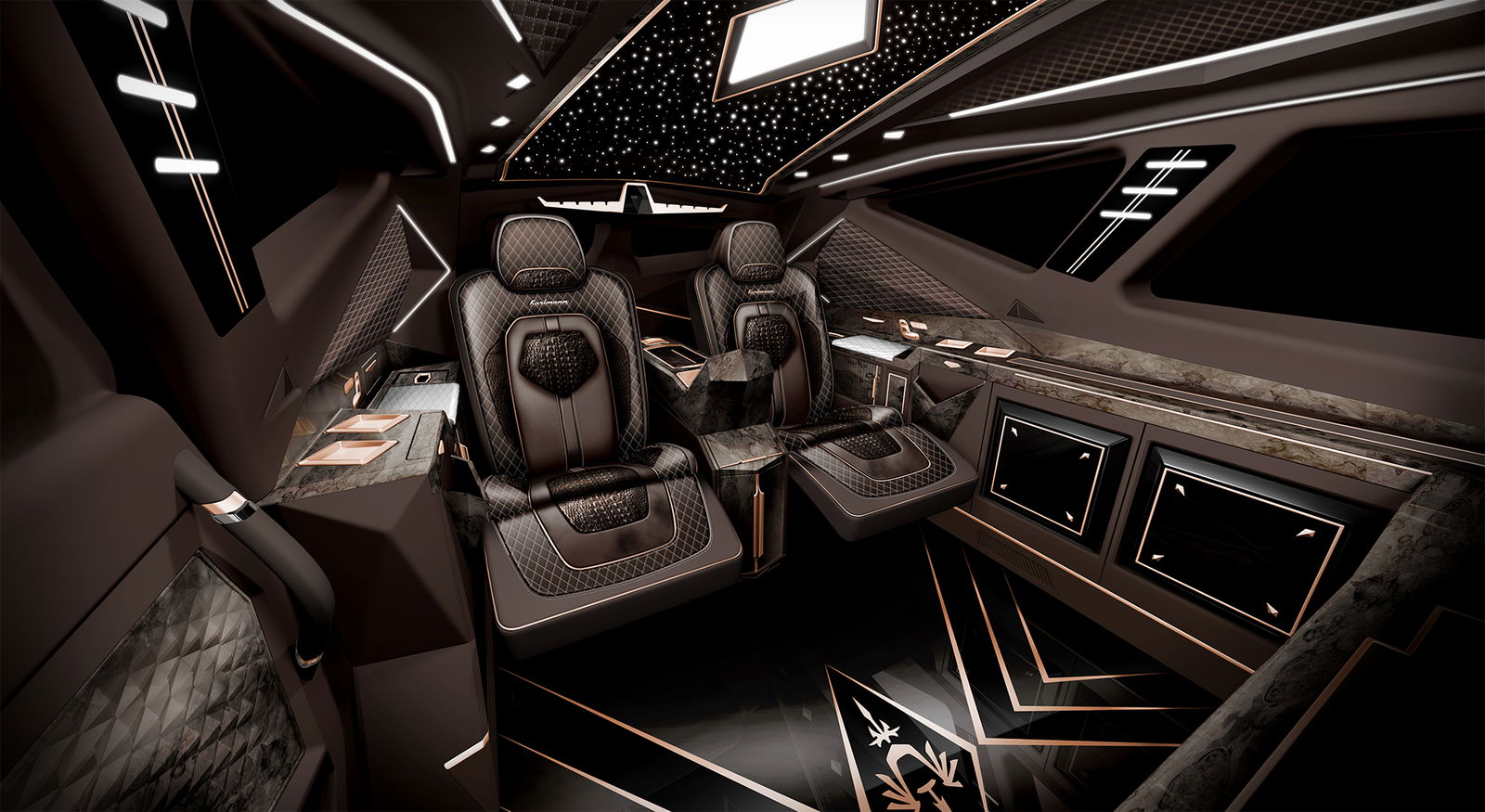 Eleganza araba. O cinese?Lungo circa 6 metri e largo 2,5, il Karlmann King, prodotto in Cina dalla IAT, ha un passo di 3,70 metri: ciò significa un abitacolo decisamente spazioso, che il cliente può arredare come meglio crede. Visto e considerato che questo incredibile veicolo sedurrà soprattutto i grandi petrolieri arabi o i ricchi cinesi e russi, gli arredi interni non sono esattamente il trionfo del minimalismo. Il padiglione può diventare un cielo stellato, mentre le poltrone assomigliano in tutto e per tutto a quelle di un Airbus da volo intercontinentale.