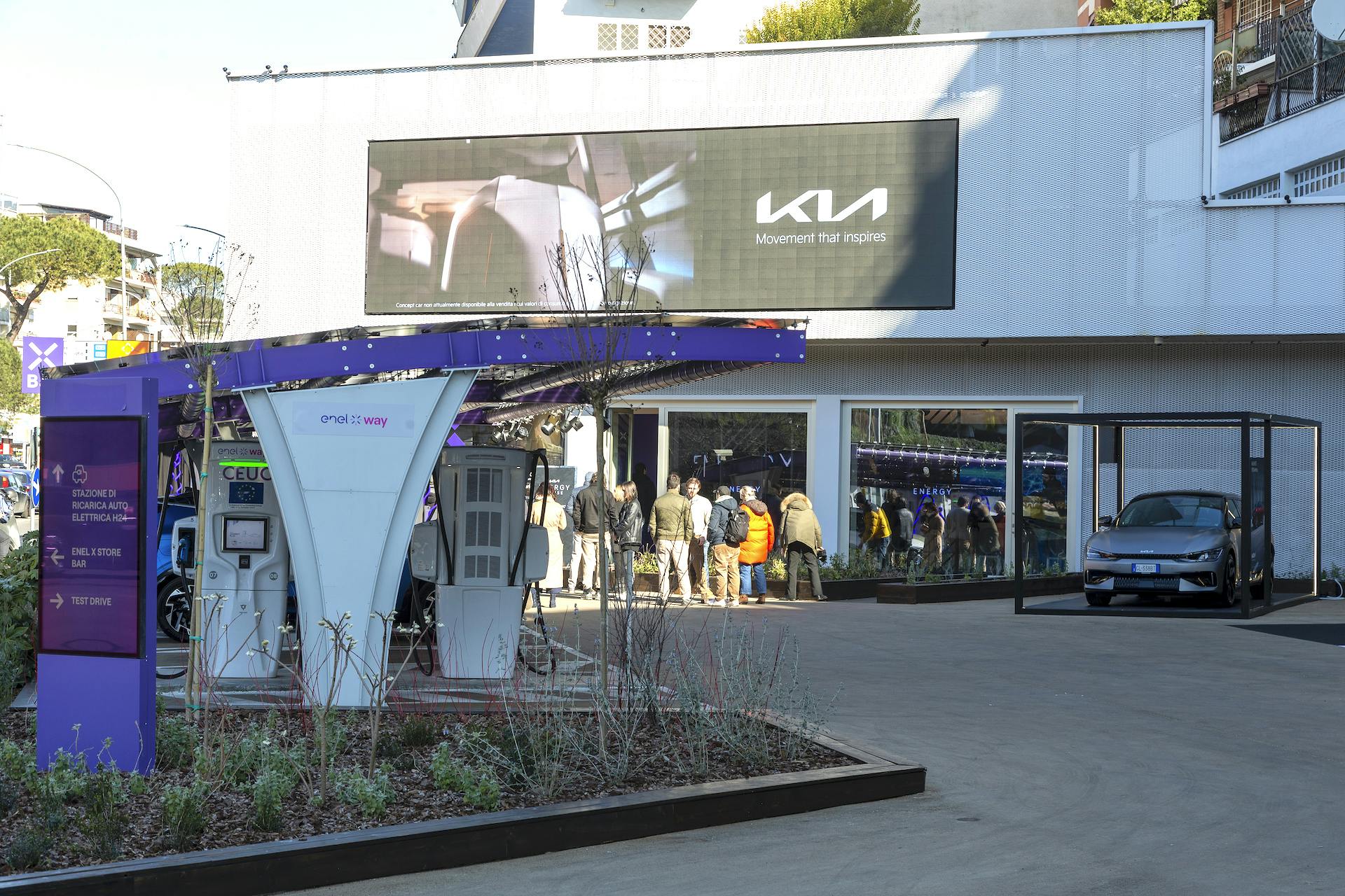 Naturalmente la Kia Energy House mantiene il servizio di ricarica di Enel X Way, la business unit globale che Enel ha dedicato alla mobilità elettrica: oltre alle stazioni in corrente alternata da 22 kW sono presenti quelle ultra-fast HPC in corrente continua ad alta potenza, in grado di erogare fino a 350 kW. I clienti potranno anche approfittare della zona bar, della Lounge Zone e di un’area per il co-working. L’Enel X Store di Corso Francia a Roma è aperto dalle 9 alle 19 dal lunedì al venerdì, mentre il sabato chiude alle 13.