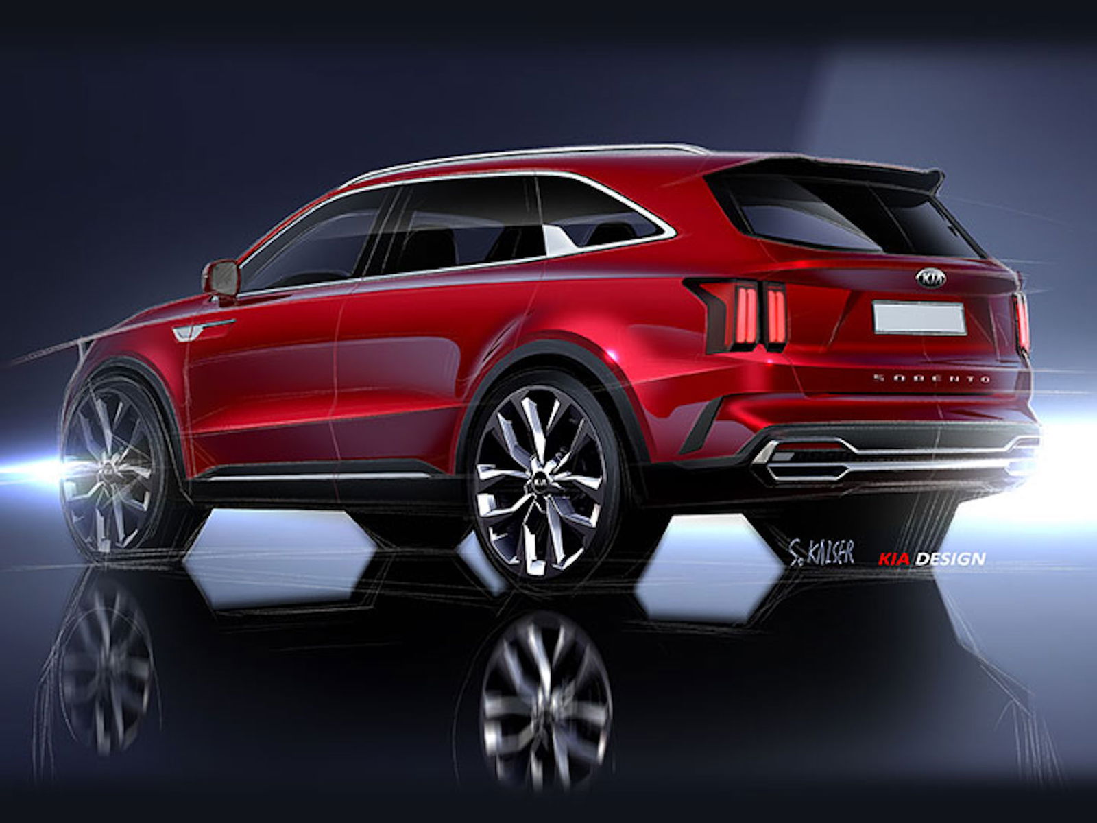 Abbiamo fatto riferimento in apertura alla Sorento. Il motivo è che al prossimo Salone di Ginevra (5-15 marzo 2020) verrà presentata la nuova generazione, di cui Kia ha rilasciato i primi teaser ufficiali. Si tratta di bozzetti ancora molto lontani dalla realtà, da cui però si evincono alcuni elementi molto interessanti. Il primo è che i volumi si confermano “imponenti”, con il tetto che prosegue parallelo (o quasi) al suolo fino alla fine, e il lunotto inclinato di pochi gradi, testimonianza del fatto che i progettisti abbiano voluto lasciare molto spazio alla terza fila di sedili e ai bagagli. Per il resto, la griglia anteriore aumenta di dimensioni, soprattutto in larghezza, mentre il montante posteriore, con un ampio “spicchio” di carrozzeria inclinato, dà slancio alla vista laterale.
