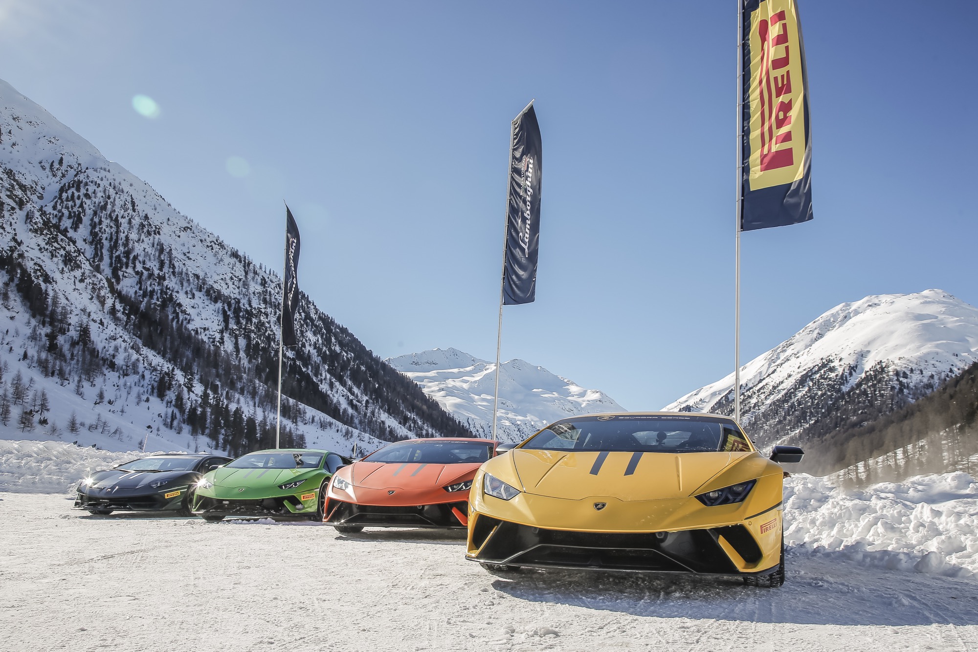 Livigno (Sondrio) – Immaginate l’alba su una meravigliosa valle innevata. Un tracciato pieno di curve dal fondo liscio e ghiacciato, luccicante. Una squadra di istruttori composta da piloti in attività. E due auto che rappresentano il punto più alto dell’evoluzione di altrettanti modelli Lamborghini: la V10 Huracán Performante e la V12 Aventador SVJ. Entrambe con motore aspirato e trazione integrale, aspettano gli allievi dell’Accademia Lamborghini, che una volta l’anno abbandona le più celebri piste del mondo per approdare tra la neve e il ghiaccio di Livigno. Il corso raduna gli appassionati, clienti Lamborghini e non, alla ricerca di un’esperienza unica, forse ancora più emozionante di quella della pista. Il programma prevede un giorno e mezzo di didattica, concentrato per i giornalisti in dieci ore davvero intense.