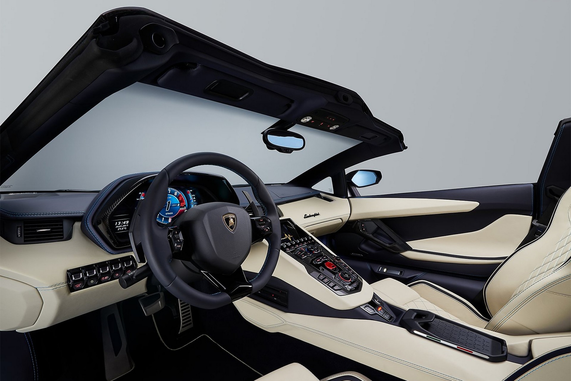 50 kg più pesante della CoupéLa capote in tela? Non per la Aventador. La Roadster Lamborghini si avvale di un tettuccio bipartito in carbonio a finitura opaca o lucida, pesante solo 6 kg e personalizzabile tanto nella trama quanto nella verniciatura grazie al programma Ad Personam della Casa di Sant’Agata Bolognese. In abitacolo, analogamente alla coupé gemella, spicca il nuovo display TFT della strumentazione, mentre il sistema multimediale è compatibile con lo standard Apple CarPlay. Manca una sola informazione… il peso. Ebbene, la Roadster del Toro in configurazione S ferma l’ago della bilancia a 1.625 kg. Vale a dire 50 kg in più rispetto alla Coupé. Un risultato cui concorrono la monoscocca in fibre composite e i freni carboceramici.