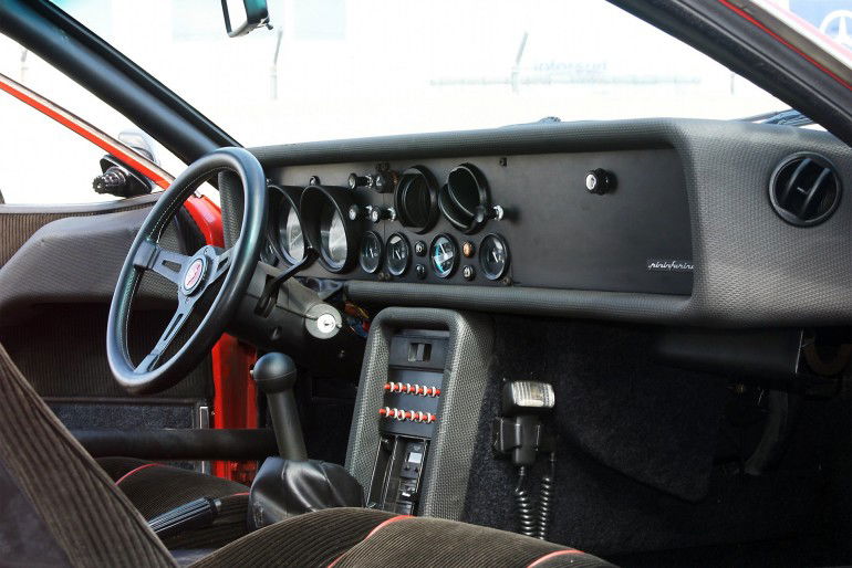Sviluppata sulla base della Beta Montecarlo Turbo da pista, era chiamata a raccogliere l’eredità delle vincenti Fiat 131 Abarth e Lancia Stratos. Un’eredità pesantissima, al punto che la ricerca delle massime prestazioni influì marcatamente sul design. Il cofano anteriore, ad esempio, era in vetroresina e presentava una leggera bombatura al centro per accogliere la piccola ruota di scorta, mentre l’analogo componente al retrotreno, incernierato al tetto per agevolare gli interventi di manutenzione, era caratterizzato dall’ampio lunotto in vetro che lasciava il motore in bella vista. Lo spoiler, morigerato quanto un abito da sera di Miley Cyrus, era di serie per la vettura da gara, optional per la versione stradale, mentre lungo le fiancate, nella zona del retrotreno, spiccavano due vistose prese d’aria per “ossigenare” il propulsore.