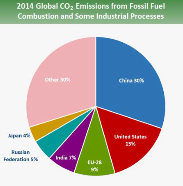 L’Unione Europea, con i suoi 28 paesi, è responsabile dell’emissione di una piccola fetta (9%) delle emissioni mondiali di CO2