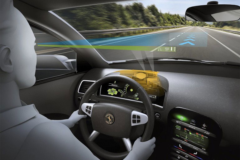 L’angelo custode d’ogni automobilista. L’auto si arresta automaticamente in caso di collisione imminente, specie durante la marcia urbana. I moderni sistemi di frenata autonoma del veicolo sfruttano l’interazione tra ABS, radar, telecamere e sistemi a raggi infrarossi per parametrare la velocità d’avanzamento della vettura e il ridursi della distanza di sicurezza. Un’assicurazione sulla vita, solitamente disponibile per la sola marcia cittadina – a velocità ridotte; spesso sino a 30 km/h – oppure estesa alla guida extraurbana.Head-Up display