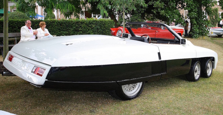 Panther SixDella Panther 6 furono costruiti solo due esemplari. Il veicolo fu creato nel 1976 dallo stesso Robert Jankel, proprietario della piccola fabbrica di veicoli britannica Panther. Questa cabriolet a due posti ha ben sei ruote. Sui due assi anteriori sterzanti si trovano quattro piccoli pneumatici di formato 205/40 VR13. L’assale posteriore è dotato di due ruote notevolmente più grandi. L’auto, insolita nel suo genere, riprese il principio di progettazione della Tyrrell P34 – che dal 1976 disputava i Campionati del Mondo di Formula 1, suscitando grande scalpore – e lo applicò a un veicolo da strada. La Panther 6 monta un motore otto cilindri da 8,2 litri, costruito sopra l’asse posteriore, acquisito da Cadillac e dotato di due turbocompressori. Accreditato di una potenza massima di600 CV, la spingeva fino a 320 km/h circa.