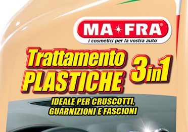 Qui siamo nel campo dei “maniaci della pulizia”. Nel catalogo di MaFra c’è anche Plastic Care 3in1: un trattamento che pulisce, ravviva e protegge le superfici in plastica, per restituire quell’effetto auto nuova che tanto ci piace. Nella formulazione non mancano una barriera anti-UV e antistatica, che riduce il depositarsi della polvere.