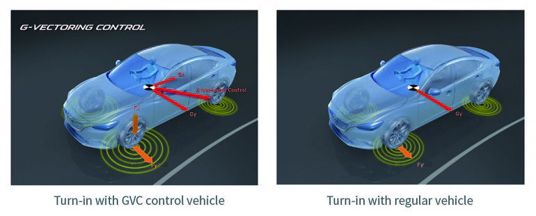 Si chiama G-Vectoring Control (GVC) ed è il nuovo sistema ideato da Mazda per ottimizzare la marcia, specie in presenza di superfici a bassa aderenza. Integrato nel pacchetto Skyactiv-Vehicle Dynamics, che permette di armonizzare il comportamento di propulsore, sospensioni, sterzo e sistemi di sicurezza, vede l’elettronica parametrare il grado di rotazione dello sterzo e l’accelerazione laterale per poi andare ad agire sull’erogazione della coppia del motore, così da trasferire maggiormente il carico sull’assale anteriore o posteriore. Una soluzione che, ad esempio in entrata di curva, attenua la spinta del propulsore onde provocare un trasferimento delle masse verso l’avantreno, a tutto vantaggio della fase d’inserimento, mentre una volta riallineato il volante la coppia torna a essere erogata integralmente, favorendo la stabilità. Variazioni tutt’altro che marcate, ma secondi i tecnici Mazda sufficienti a ottimizzare trazione, sicurezza e comfort dei passeggeri.