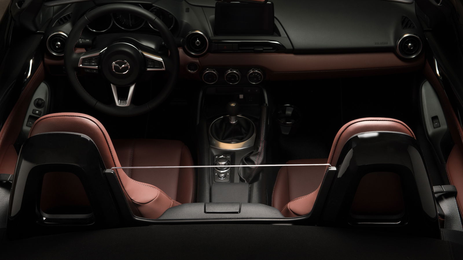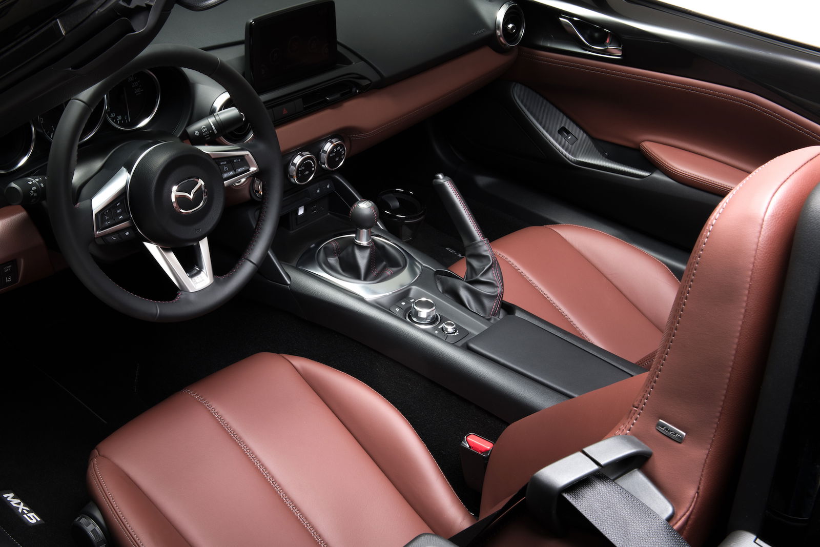 Interni speciali e ricchiLa carrozzeria della Mazda MX-5 Grand Tour, in color Machine Gray, va cromaticamente a braccetto con gli interni dedicati in pelle Nappa Brown. In abitacolo, non mancano impianto audio Bose con altoparlanti integrati nei poggiatesta e sistema multimediale con schermo touch a colori da 7″. Il frangivento, posizionato tra gli schienali, è in materiale trasparente mentre la capote (tradizionalmente manuale) è in tela. Infine, l’abitacolo è impreziosito da clima automatico, sensori luce/pioggia, sistema smart key e tappetini con logo “MX-5”.